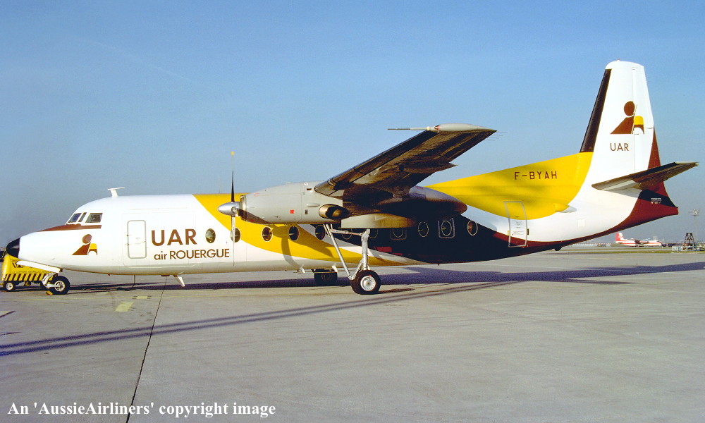 F-BYAH. UAR Air Rouergue - in the standard livery at an unknown airport, March 1977. (R. N. Smith Collection Copyright Image 1999-131.) |
