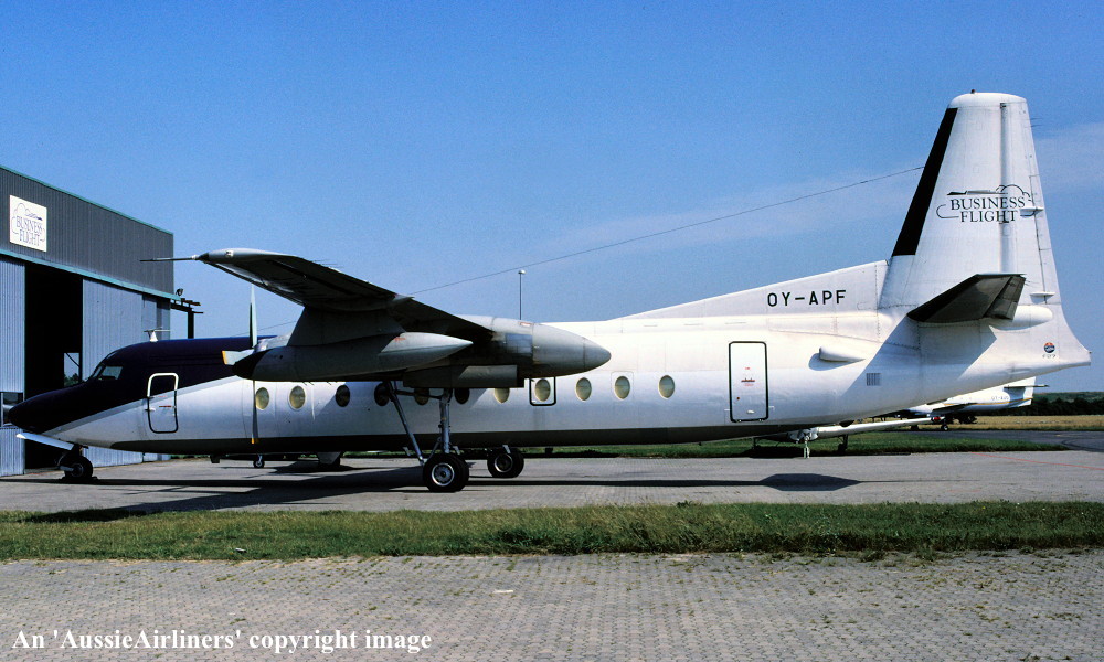 OY-APF. Business Flight - in the standard livery at Copenhagen Airport, October 1991. (R. N. Smith Collection Copyright Image 1999-892.) |