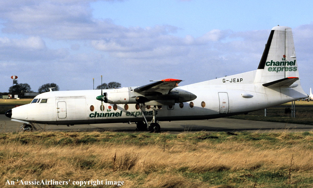 G-JEAP. Channel Express - in the 'all-white' livery at an unknown airport, August 1999. (R. N. Smith Collection Copyright Image 1993-656.) |