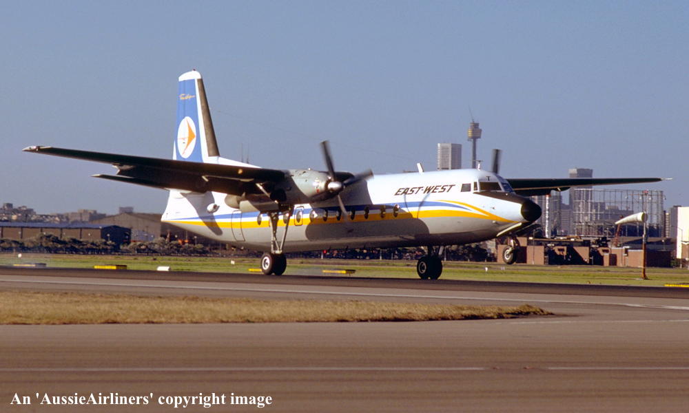 VH-EWT. East-West - in the standard livery at Sydney Kingsford Smith Airport, September 12, 1981. (R. N. Smith Copyright Image 1999-688.) |