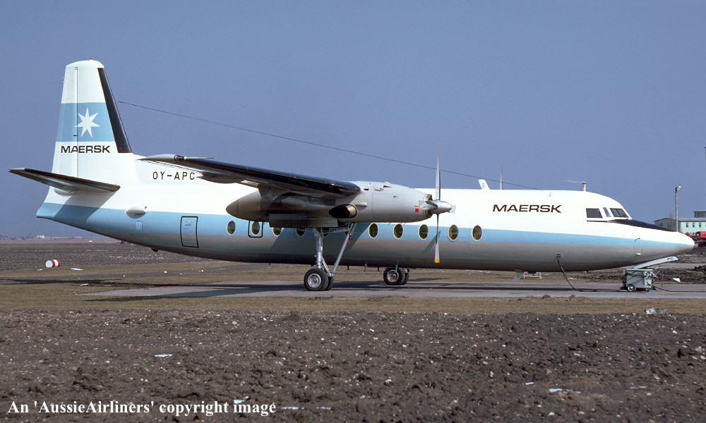 OY-APC. Maersk - in the original livery at Copenhagen Airport, February 1972. (R. N. Smith Collection Copyright Image 1999-763.) |
