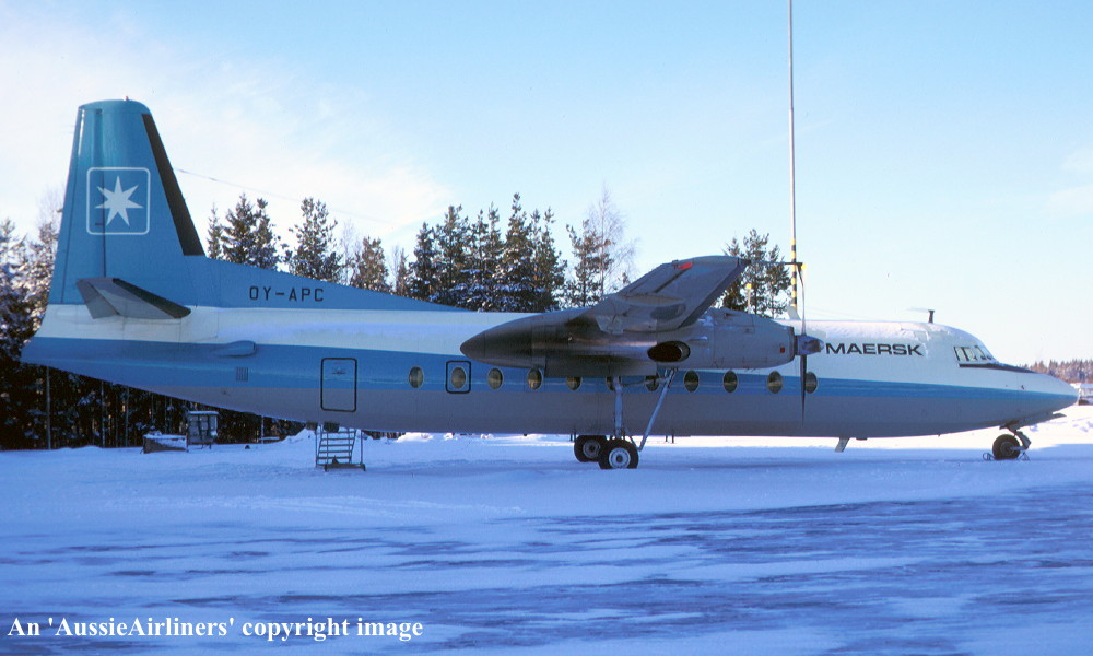 OY-APC. Maersk - in the original livery at Copenhagen Airport, February 1972. (R. N. Smith Collection Copyright Image 1999-741.) |