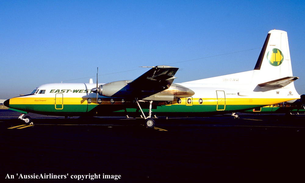 VH-EWW. East-West - 'City of Devonport' in the final livery at Melbourne Tullamarine Airport, June 26, 1987. (R. N. Smith Copyright Image 1999-703.) |