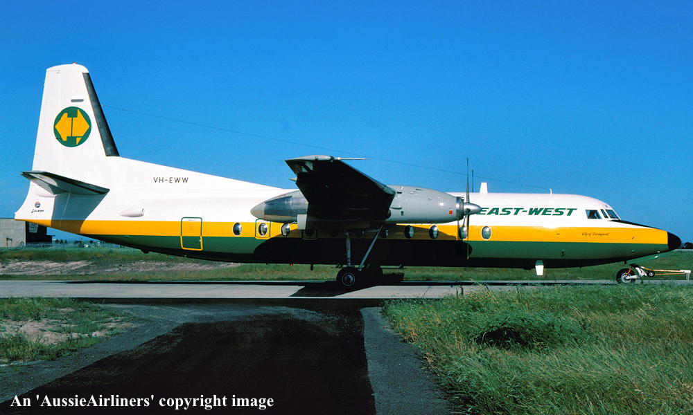 VH-EWW. East-West - 'City of Devonport' in the final livery at Sydney Kingsford Smith Airport, August 11, 1984. (R. N. Smith Copyright Image 1999-701.) |