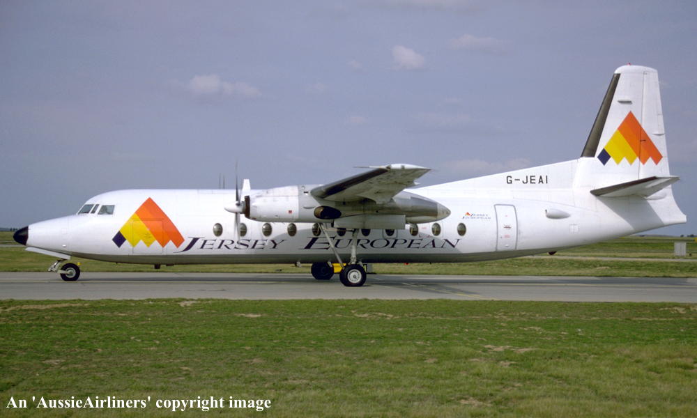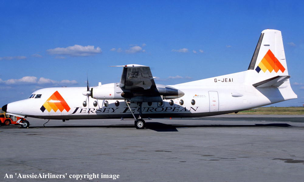 G-JEAI. Jersey European - in the standard livery at Jersey Airport, October 1992. (R. N. Smith Collection Copyright Image 1999-504.) |