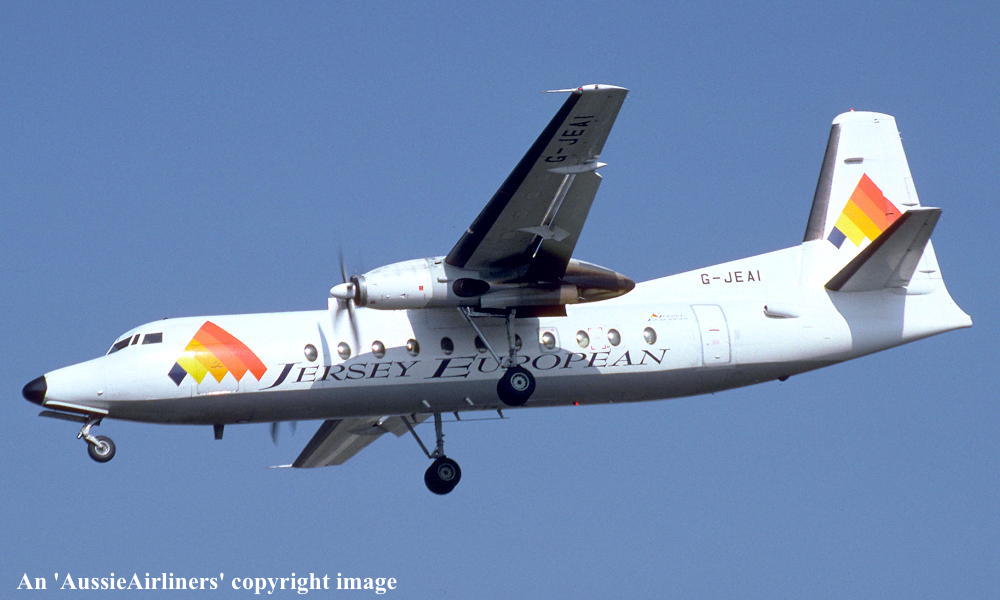 VH-EWZ. Jersey European - in the basic 'East-West' livery at Jersey Airport, September 1990. (E. D. Daw Collection Copyright Image 1999-750.) |