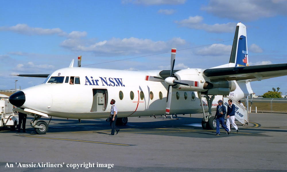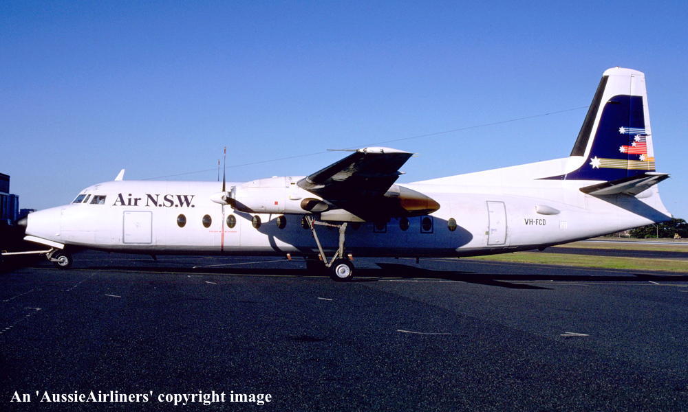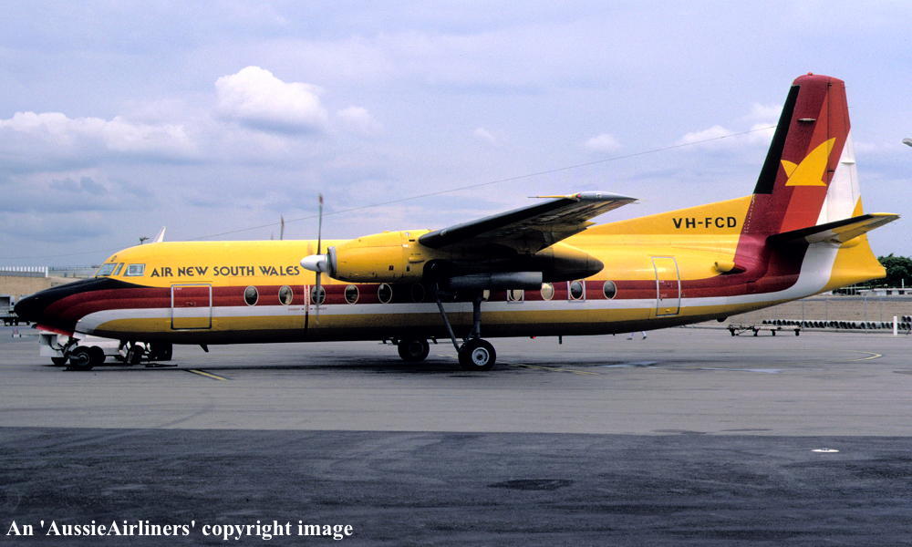 VH-FCD. Air N.S.W. - in the 'Southern Cross' livery at Brisbane Airport, date unknown. (R. N. Smith Collection Copyright Image 1993-674.) |
