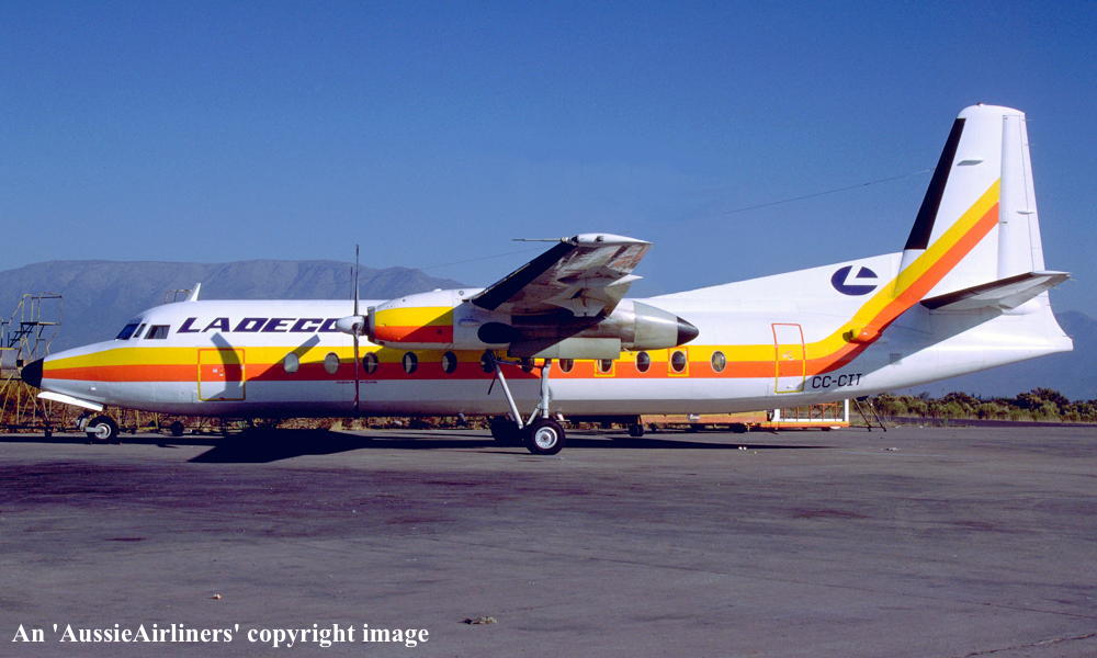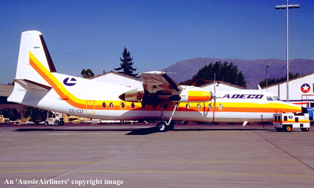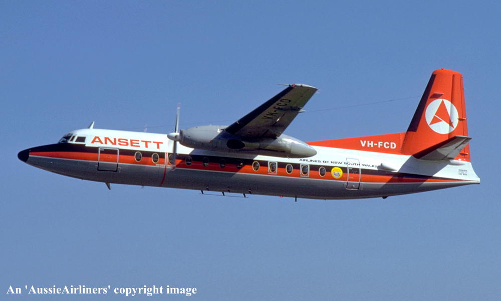 VH-FCD. Fokker F.27-5224 Friendship. c/n 10533. Was also registered as: CC-CIT; OB-1443. |