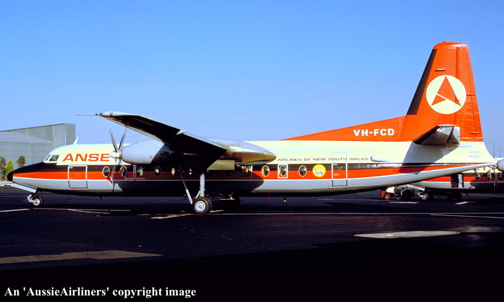 VH-FCD. Ansett Airlines of New South Wales - in the 'delta' livery at Sydney Kingsford Smith Airport, May 15, 1979. (R. N. Smith Copyright Image 1999-541.) |