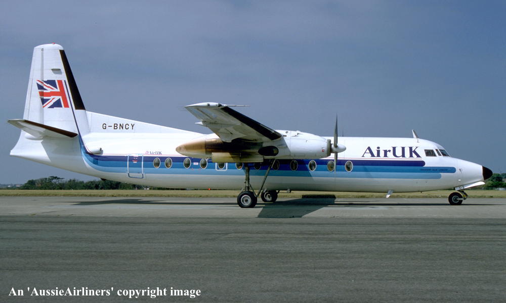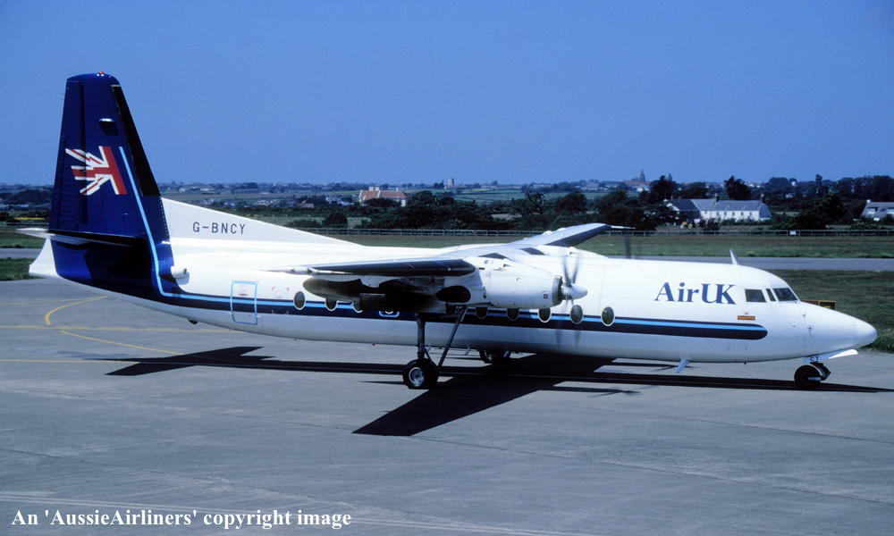 This aircraft was ordered new by Ansett for Airlines of New South Wales - ? The registration 'PH-EXH' with the export registration 'E-593' was reserved by Fokker - April 06, 1977 Entered onto Dutch Aircraft Register as 'PH-EXH' - April 21, 1977 Registered to Fokker VFW BV, Amsterdam Schiphol Oost First flown as 'PH-EXH' - June 17, 1977 Cancelled from Dutch Aircraft Register - June 29, 1977 Entered onto Australian Aircraft Register as VH-FCE - June 29, 1977 Registered to Ansett Transport Industries (Operations) Pty Ltd, Melbourne Accepted by Ansett Airlines of New South Wales at Amsterdam (Schiphol) - June 29, 1977 Departed Amsterdam (Schiphol) on the delivery flight to Australia - June 30, 1977 It arrived at Melbourne (Tullamarine) on completion of the delivery flight - July 06, 1977 Ferry route: Amsterdam - Belgrade - Ankara - Teheran - Dubai - Karachi - Delhi - Calcutta - Bangkok - Singapore (Seletar) - Denpasar - Darwin - Alice Springs - Melbourne Flight crew: Capts R. Baker, G. Gibson, K. Holden; Navigator W. C. Kennedy; LAME R. M. Chapple Operated its first Ansett Airlines of New South Wales revenue service - July 12, 1977 Operated its final Air N.S.W. revenue service - October 25, 1986 Sold to Air UK - November 19, 1986 Departed Melbourne (Tullamarine) on the ferry flight to the U.K. as AN27 - November 19, 1986 It arrived at Norwich on completion of the ferry flight - November ?, 1986 Ferry route: Melbourne - Alice Springs - Broome - Denpasar - Singapore (Seletar) - Bangkok - Calcutta - Delhi - Karachi - Bahrain - Jeddah - Cairo - Athens - Milano - Norwich Flight crew: Capts K. Duncan, J. A. McEnlly; LAME R. M. Chapple Cancelled from Australian Aircraft Register - February 06, 1987 The aircraft had flown 23,947 hours with 23,375 landings Entered onto British Aircraft Register as G-BNCY (CofR G-BNCY/R1) - February 09, 1987 Registered to Air UK Ltd The aircraft was named 'Friendship Little Langtry' The aircraft was seriously damaged whilst landing at Guernsey Airport - December 07, 1997 It skidded off the runway and the right landing gear collapsed The 42 passengers and 4 crew were uninjured It was considered uneconomical to repair, sold for scrap and broken up on site - January 1998 Cancelled from the British Aircraft Register - February 19, 1998 |