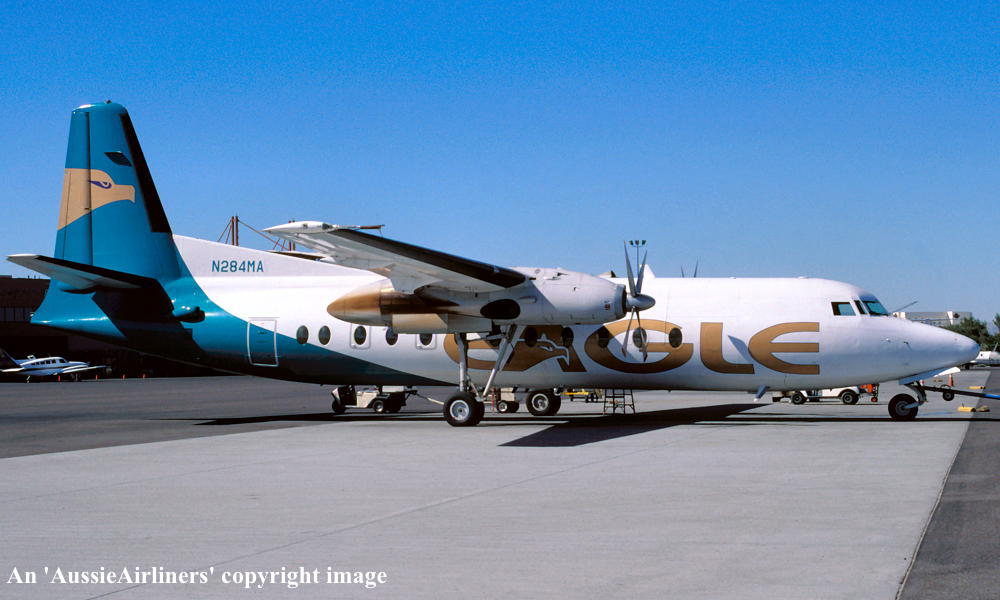 N284MA. Eagle Airlines - in the standard livery at an unknown airport, March 1999. (R. N. Smith Collection Copyright Image 1999-557.) |
