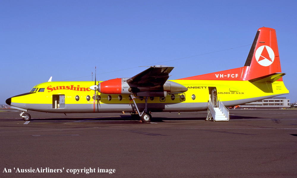 VH-FCF. Ansett Airlines of N.S.W. - in the revised 'Sunshine' livery at Sydney Kingsford Smith Airport, May 23, 1980. (R. N. Smith Copyright Image 1999-257.) |