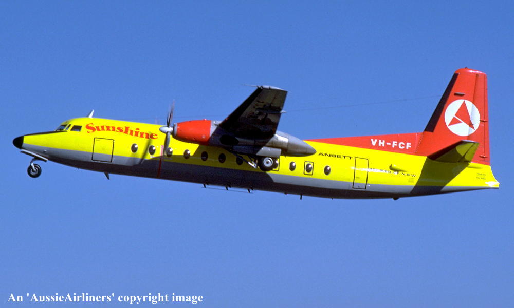 Entered onto the Dutch Aircraft Register as 'PH-EXL' with the export registration 'E-595' - April 06, 1977 Registered to Fokker VFW BV, Schiphol Oost This aircraft was originally intended for ARAMCO but it was not taken up First flown as 'PH-EXL' - August 09, 1977 Cancelled from the Dutch Aircraft Register - August 26, 1977 Entered onto the Australian Aircraft Register as VH-FCF - August 29, 1977 Registered to Ansett Transport Industries (Operations) Pty Ltd, Melbourne Accepted by Ansett Airlines of New South Wales at Amsterdam (Schiphol) - August 30, 1977 Departed Amsterdam (Schiphol) on the delivery flight to Australia - August 30, 1977 It arrived at Melbourne (Tullamarine) on completion of the delivery flight - September 05, 1977 Delivery route: Amsterdam - Belgrade - Ankara - Teheran - Dubai - Karachi - Delhi - Calcutta - Bangkok - Singapore (Seletar) - Denpasar - Darwin - Alice Springs - Melbourne Flight crew: Captains I. Brown, I. Strother; F/O S. R. Harrison-Williams; Navigator B. S. McEwan; LAME L. Parrish; Ansett Rep at Fokker D. Findlay; Ansett Performance Engineer P. Payne Operated its first revenue service (Captain I. Strother; F/O M. Kelly) - September 19, 1977 The aircraft was operated in two versions of the 'Sunshine' livery until 1981 Transferred to Ansett but continued to operate Air N. S .W. services - March 13, 1988 Operated the final Air N. S. W. service Brisbane - Coolangatta - Newcastle - Sydney - March 18, 1988 Operated the final Ansett Wagga Wagga - Sydney (Kingsford Smith) service - July 26, 1988 Ferried Sydney (Kingsford Smith) - Melbourne (Tullamarine) by Captain I. Deed and placed in storage - July 30, 1988 The aircraft had flown 27,416 hours with 26,309 landings Cancelled from the Australian Aircraft Register - December 15, 1988 Inspected by Mesaba Airlines technical staff at Melbourne to identify what would be needed to bring the aircraft to the United States F. A. A. and Mesaba standards - December 1988 The aircraft was fitted with special long-range fuel tanks at Melbourne (Tullamarine) - December 1988 Issued the temporary registration marks 'N284MA' - December 1988 Sold to Northwest Aircraft Inc - December 22, 1988 Departed Melbourne on the ferry flight to the United States as 'N284MA' - December 22, 1988 This flight was conducted by non-Ansett flight crew It arrived at Harrisburg, PA on completion of the ferry flight - December 29, 1988 It underwent a complete 'D' check at Harrisburg Entered onto the United States Aircraft Register as N284MA - July 1989 Ferried Harrisburg - Minneapolis (St Paul) to undergo further inspection by Mesaba - July 11, 1989 Leased to Mesaba Airlines but was operated in the Northwest Airlink livery Operated its first revenue service with Mesaba - August 01, 1989 Withdrawn from use and returned to Dutch Asset Leasing Company - September 1994 Placed in storage at Kingman, Arizona Sold to Eagle Canyon Airlines - December 05, 1996 Leased to Eagle Jet Charter trading as Scenic Airlines as the registered operator Leased to Turismo Aereo, Panama - May 2005 Entered onto the Panamanian Aircraft Register as HP-1542PS - ? Turismo Aereo purchased the operating licence of the defunct Air Panama - September 2005 Reregistered HP-1542PST - October 2005 Registered to Air Panama Operated by Air Costa Rica in the standard 'Air Panama' livery - March 2006 Advertised for sale as of mid-2007 The aircraft was still in service - May 2009 It was reported that this aircraft was the last Fokker F.27 in passenger service anywhere in the world It was planned to be replaced by a Fokker 70 - 2010 Current status - ? |