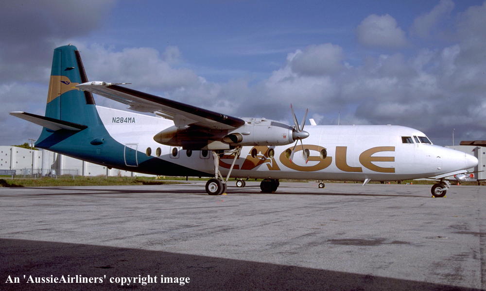 N284MA. Eagle Airlines - in the standard livery at an unknown airport, March 1999. (R. N. Smith Collection Copyright Image 1993-052.) |