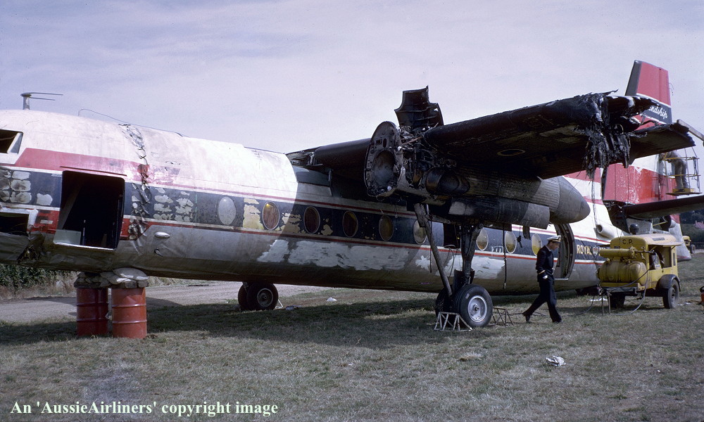 This aircraft was ordered new by Ansett-ANA for Airlines of NSW - May 05, 1960 Entered onto the Dutch Aircraft Register as PH-FCU - June 20, 1961 Registered to NV Kon. Ned. Vliegtuigenfabriek Fokker (CofR 802) Entered onto the Australian Aircraft Register as VH-FNH - June 20, 1961 Registered to Airlines of N.S.W. First flown as 'PH-FCU' - June 23, 1961 Accepted by Ansett-ANA at Amsterdam (Schiphol) - July 10, 1961 The aircraft was configured to seat 40 passengers Departed Amsterdam (Schiphol) on the delivery flight to Australia - July 11, 1961 It arrived at Melbourne (Essendon) on completion of the delivery flight from The Netherlands - July 19, 1961 Although it was intended to operate with Airlines of N.S.W. it was not transferred to them Operated its first revenue service with Ansett-A.N.A. - July ?, 1961 This aircraft was damaged beyond economical repair whilst landing at Launceston - March 17, 1965 During the approach problems were encountered with the port engine and propeller, which was feathered The flight crew were unable to maintain correct runway heading and an overshoot was commenced The speed dropped below the minimum control speed despite full power being applied to the starboard engine The port wing struck the runway resulting in about 3 metres breaking off As aircraft ran off the runway the starboard undercarriage and nose wheel collapsed It came to rest some 230 metres abeam of the runway threshold with fire in port wing area This was quickly extinguished by the airport firefighters This accident attributed to the loss of an engine 10 minutes prior to landing and wind-sheer encountered on approach Flight crew: Captain J. Waxman; F/O E. York No injuries sustained by the 4 crew members and 19 passengers onboard To read more about this accident please click 'HERE' Cancelled from the Australian Aircraft Register - March 17, 1965 The aircraft was scrapped on site It had flown 7,500 hours with 8,011 cycles |