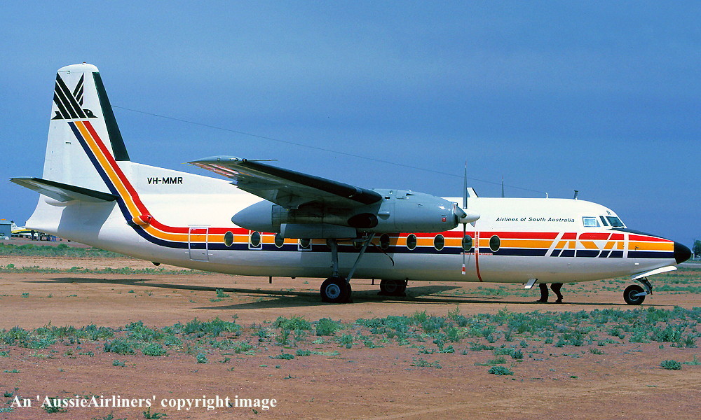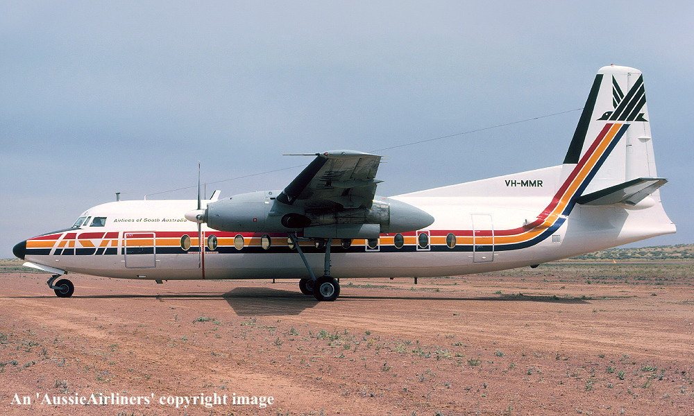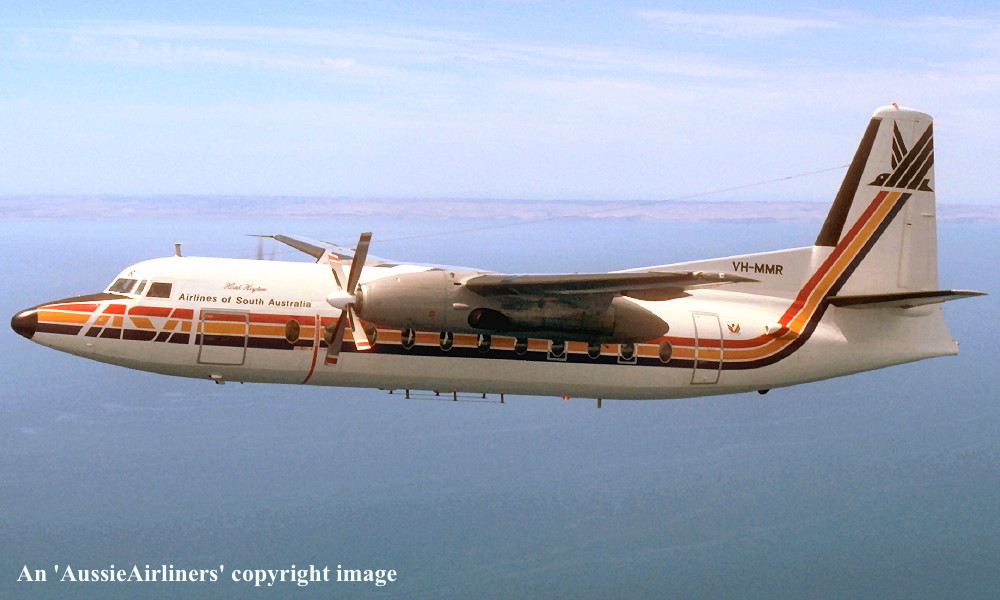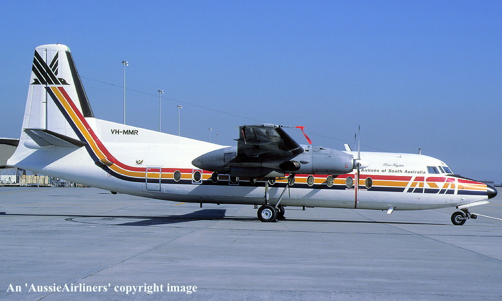 This aircraft was originally ordered by Ansett-ANA but was delivered to MMA Entered onto the Dutch Aircraft Register as PH-FIX - July 14, 1966 Registered to KNV Fokker NV, Holland First flown at Amsterdam (Schiphol) as PH-FIX - July 14, 1966 Entered onto the Australian Aircraft Register as VH-MMR - July 20, 1966 Registered to Mac.Robertson Miller Airlines Ltd, Perth Cancelled from the Dutch Aircraft Register - July 20, 1966 It arrived at Perth on completion of the delivery flight - July 26, 1966 Flight crew: Captains S. Goddard, J. Murray, M. Gent; Navigator W. C. Kennedy Operated its first revenue service - July 28, 1966 The aircraft was named 'RMA Robe' by Mrs C. Court at Geraldton - August 13, 1966 Registered to Ansett Transport Industries (Operations) Pty Ltd, Melbourne - September 29, 1969 It was withdrawn from M.M.A. service - April 09, 1971 Departed Perth on the ferry flight to Sydney for service with Ansett Airlines of N.S.W. - April 11, 1971 Involved in fatal accident when a ground porter walked into rotating propeller at Sydney Airport - June 13, 1975 Known flight crew: Hostess S. Cooper; R. Sargeant Transferred to Ansett Airlines of South Australia - December 03, 1977 Operated final ASA service Adelaide - Woomera - Adelaide (Captain K. McCoy; F/O G. Inglis) - April 20, 1979 Painted into the 'Piping Shrike' livery of Airlines of South Australia - July 11, 1981 The aircraft was named 'Sir Hans Heysen' at Adelaide (West Beach) Airport - March 14, 1982 Operated ASA's final Adelaide - Port Lincoln - Ceduna - Adelaide service as GJ446/447 - March 06, 1986 Flight crew: Captain G. Kimberley; F/O S. Bradbury; Flight Attendants M. Smale, S. Burnett Operated the final ASA Adelaide - Kingscote - Adelaide service as GJ478/479 - April 04, 1986 Flight crew: Captain P. Junner; F/O M. de Santis; Flight Attendants J. Humphries, J. Trewartha Operated the final ASA Adelaide - Whyalla - Adelaide service as GJ456/457 - June 27, 1986 Flight crew: Captain I. Deed; F/O M. Beardmore; Flight Attendants T. Davidson, J. Garey Ferried Adelaide - Melbourne (Tullamarine) for service with Ansett Airlines - June 28, 1986 Entered Ansett service Melbourne (Tullamarine) - Wynyard - June 28, 1986 Temporarily withdrawn from service after operating Wynyard - Melbourne (Tullamarine) as AN854 - March 25, 1988 Returned to service following the grounding of the Ansett F50 fleet - July 1988 Last revenue service Melbourne (Tullamarine) - Devonport - Melbourne (Tullamarine) as AN857/858 - July 22, 1988 Flight crew: Captain D. Currey Placed in open storage at Melbourne (Tullamarine) Airport and offered for sale Cancelled from the Australian Aircraft Register - July 31, 1992 Aircraft had flown 52,587 hours with 53,493 cycles Aircraft was not sold and the fuselage was moved to Broadmeadows TAFE - August 10, 1992 When the aircraft was no longer required at Broadmeadows it was sold to Associated Metals - December 2002 Fuselage cut into 4 sections by the scrappers and removed |