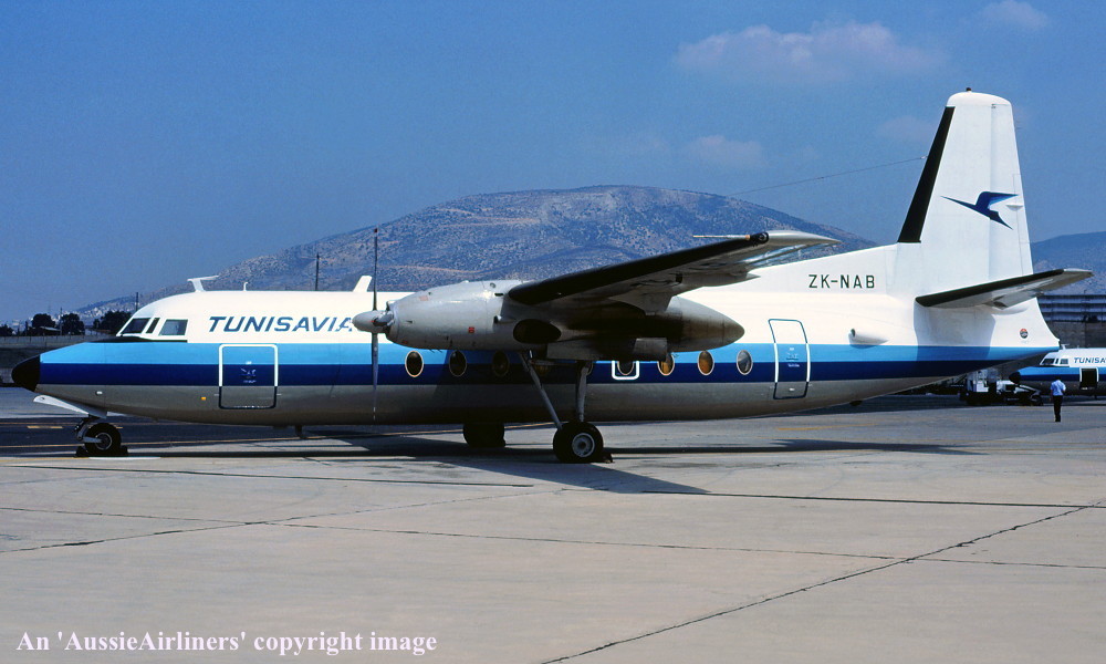 ZK-NAB. Tunisavia - in the standard livery at Athens Airport, September 1983. (R. N. Smith Collection Copyright Image 1991-102.) |