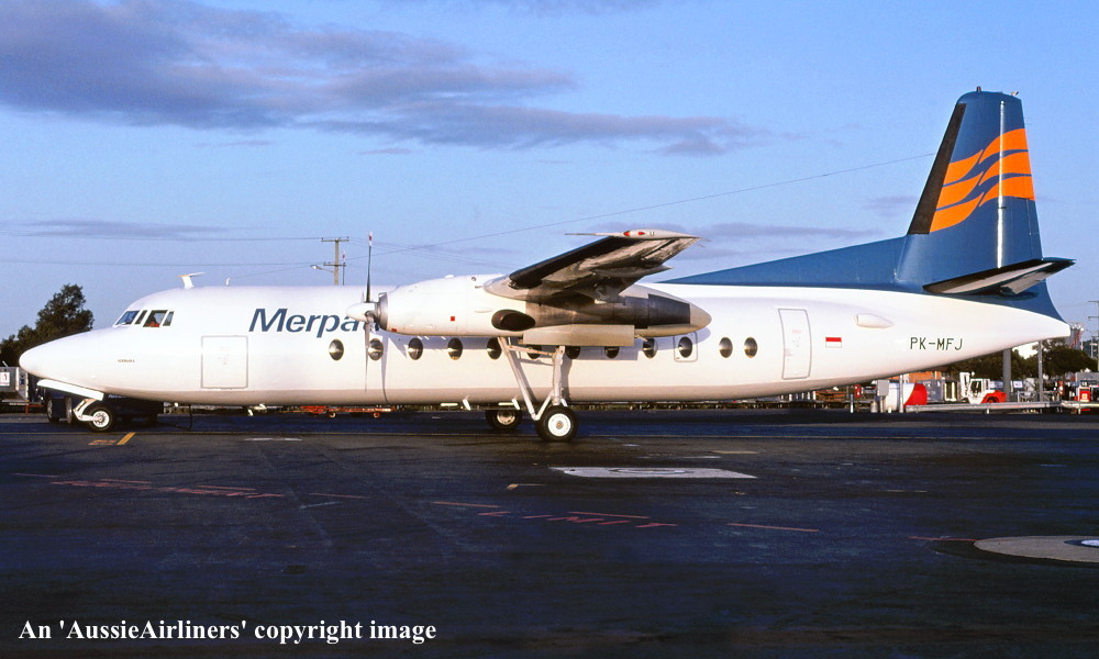 PK-MFJ. Merpati - 'Adonara' in the new livery at Brisbane Airport, May 1992. (R. N. Smith Collection Copyright Image 1991-122.) |