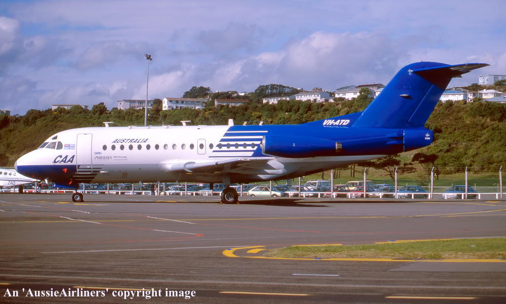 VH-ATD. CAA Airways New Zealand - in the final livery at Wellington Airport, April 1996. (M. Richardson Copyright Image 1995-209.) |