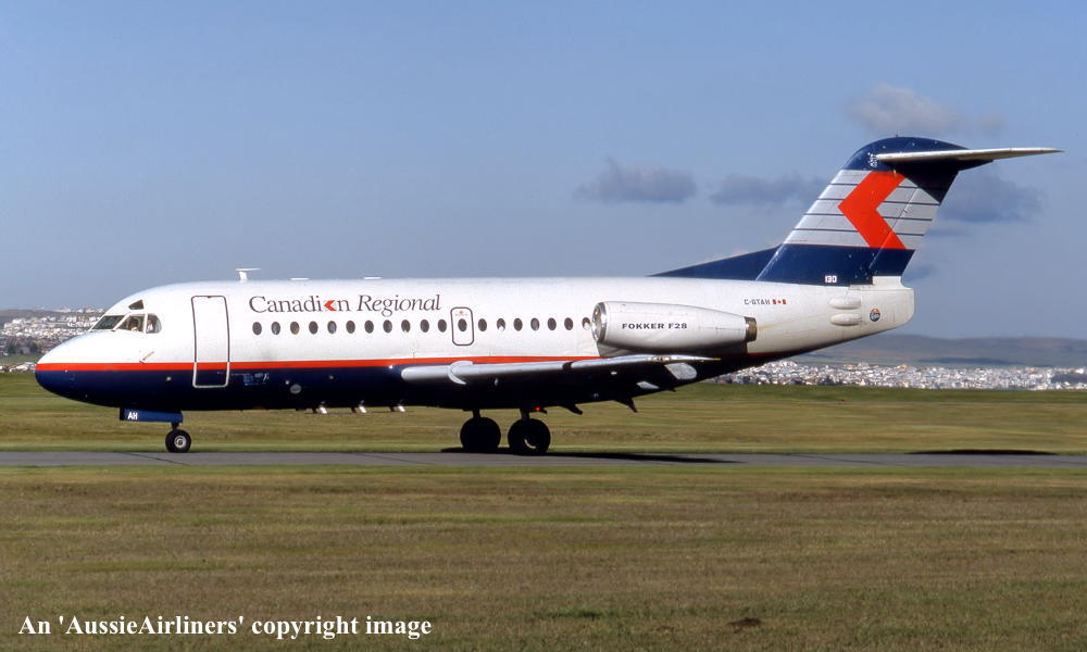VH-ATE. Fokker F28-1080 Fellowship. c/n 11082. Was also registered as: C-GTAH. |