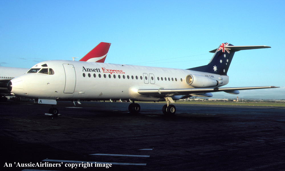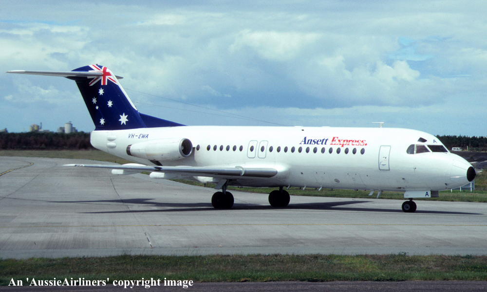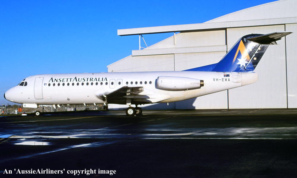 VH-EWA. Fokker F28-4174 Fellowship. c/n 11195. Was also registered as: P2-ANS. |