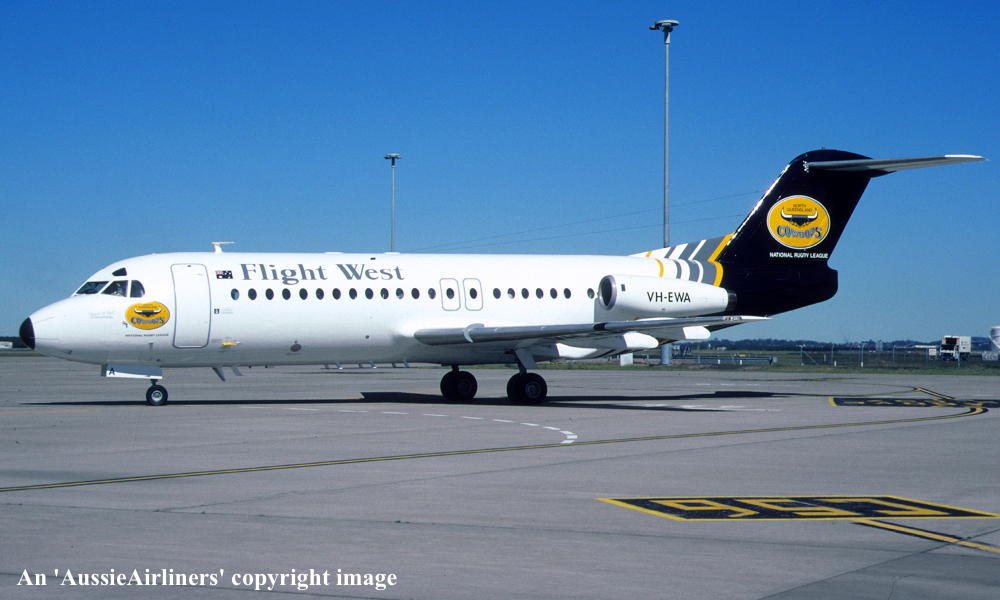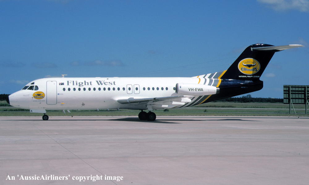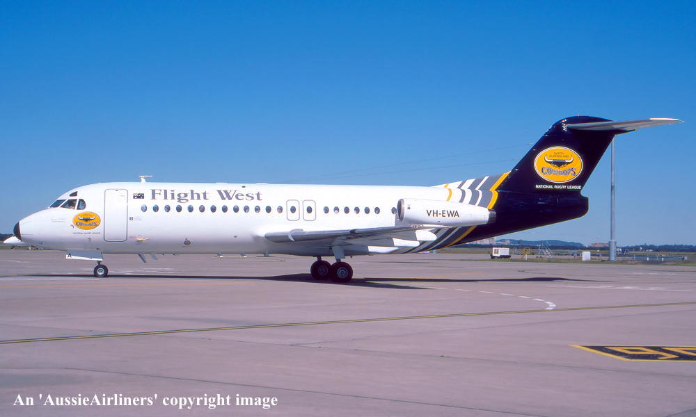 VH-EWA. Flight West - in the modified livery at Brisbane Airport, date unknown. (R. N. Smith Collection Copyright Image 1995-222.) |