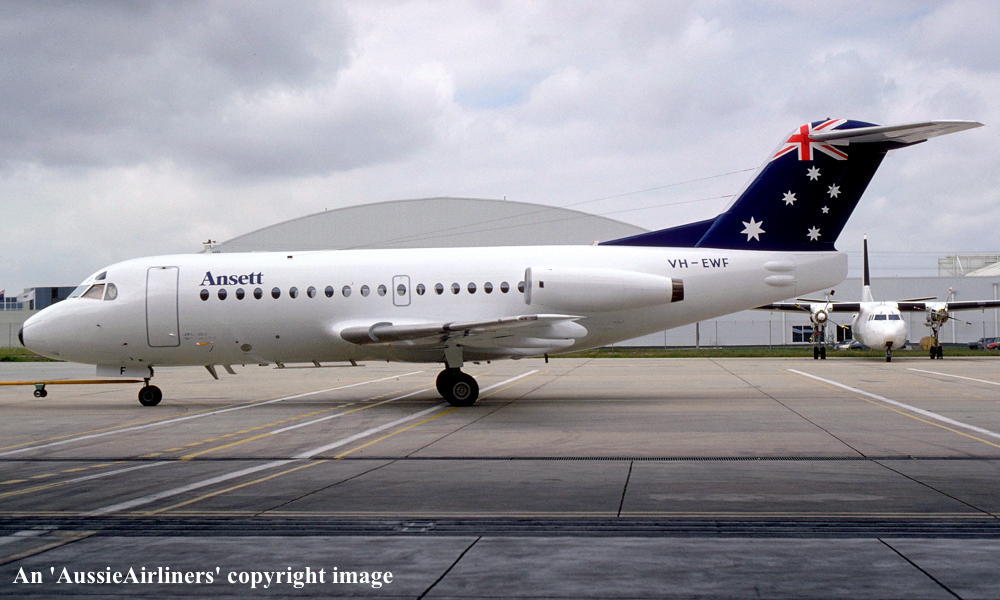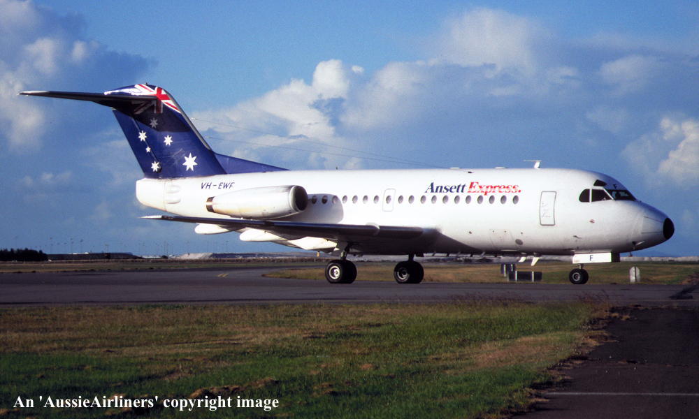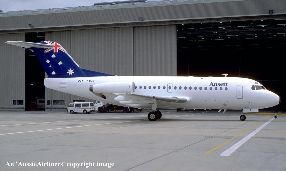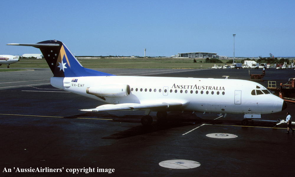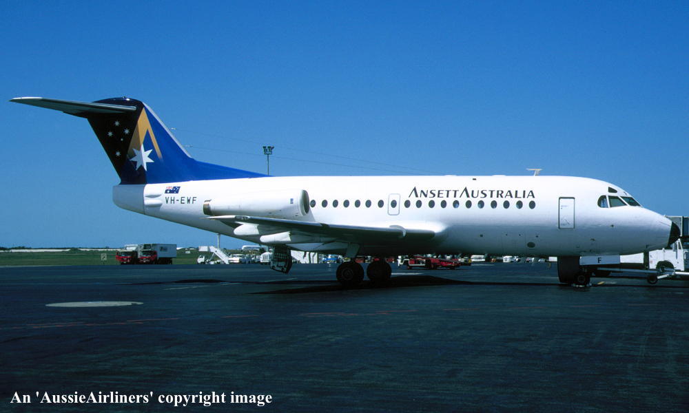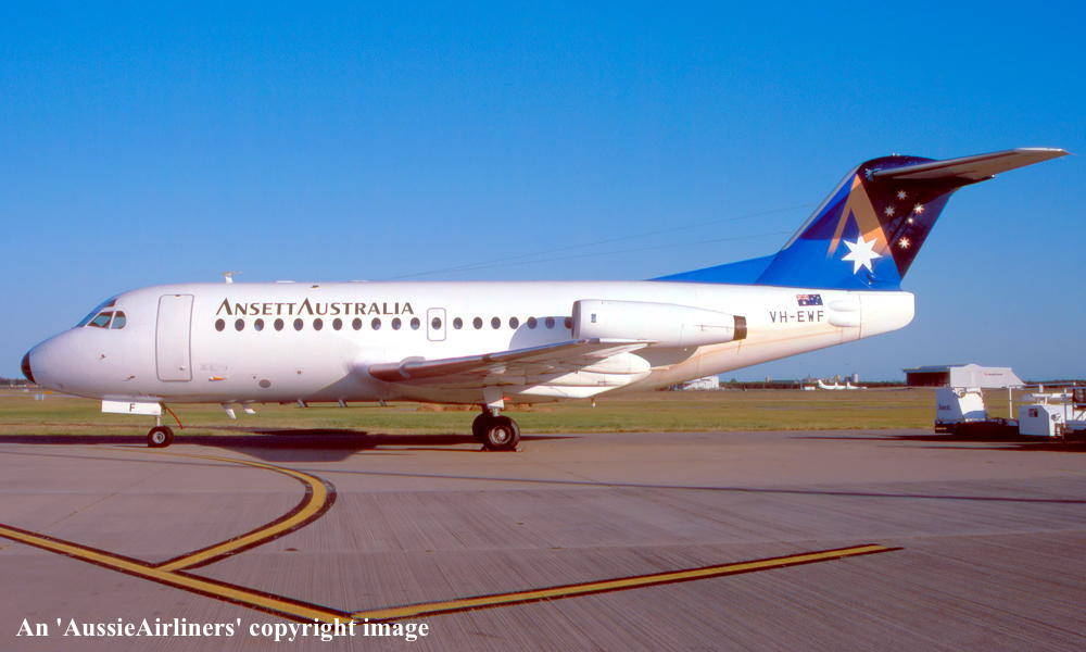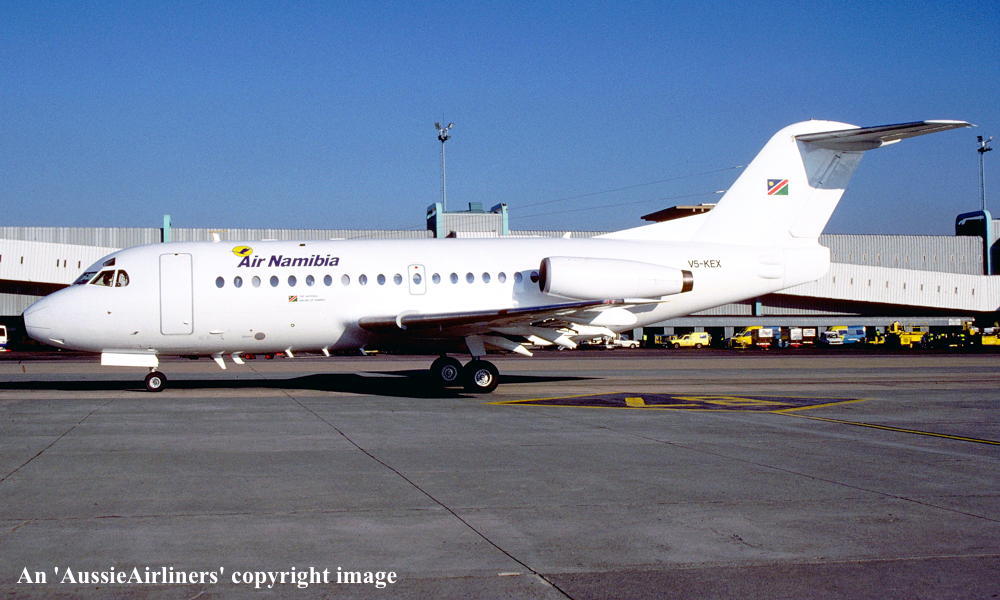 VH-EWF. Fokker F28-3130 Fellowship. c/n 11143. Was also registered as: OY-BRM; V5-KEX; ZS-JAP. |