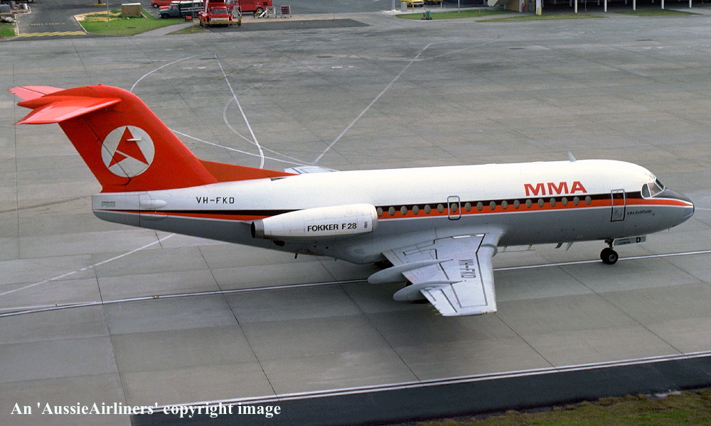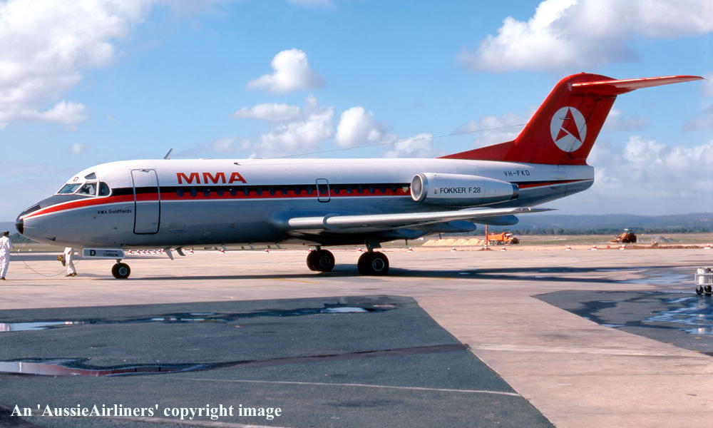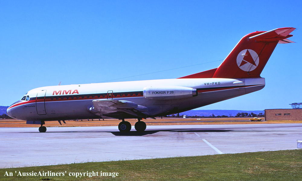 VH-FKD. MMA - in the 'delta' livery at Perth Airport, June 1978. (E. D. Daw Copyright Image 1995-062.) |