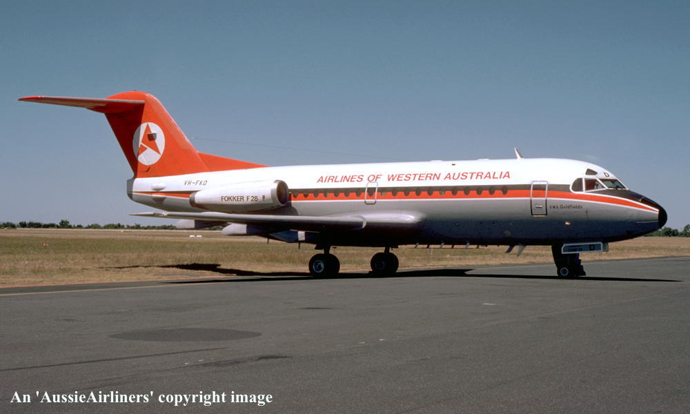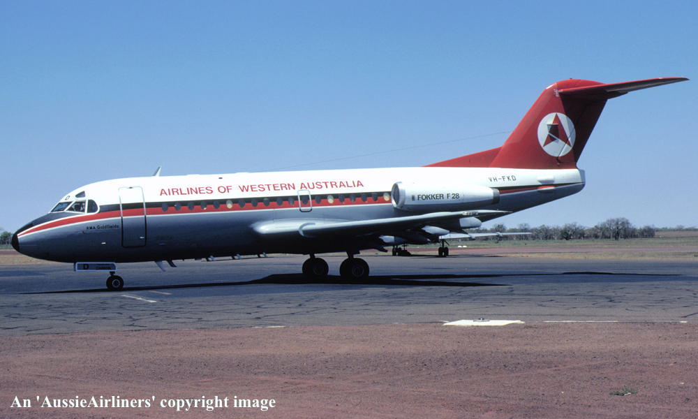 This aircraft was ordered new by Ansett Transport Industries - ? Entered onto the Dutch Aircraft Register as 'E-002 / PH-EXA' - October 06, 1970 Registered to NV Kon. Ned. Vliegtuigenfabriek Fokker First flown as 'PH-EXA' - October 26, 1970 Accepted by Ansett at Amsterdam (Schiphol) - November 07, 1970 The aircraft was painted in Ansett Airlines of New South Wales 'delta' livery Cancelled from the Dutch Aircraft Register - November 10, 1970 Entered onto the Australian Aircraft Register as VH-FKD - November 10, 1970 Registered to Ansett Transport Industries (Operations) Pty Ltd, Melbourne It was configured with 60 economy class seats Departed Amsterdam (Schiphol) on the delivery flight to Australia - November 11, 1970 It arrived at Sydney (Kingsford Smith) on completion of the delivery flight from The Netherlands - November 17, 1970 Delivery route: Amsterdam - Brindisi - Ankara - Teheran - Karachi - Calcutta - Bangkok - Singapore - Denpasar - Darwin - Alice Springs - Sydney Flight crew: Captains I. Brown, J. Murray, H. Henry; F/O J.E. Colliton; Navigator B. S. McEwen Ferried Sydney - Melbourne (Essendon) for Certificate of Airworthiness inspection - November 18, 1970 Used for pilot training at Tullamarine and Essendon Airports Ferried Melbourne (Tullamarine) - Sydney on return to Ansett Airlines of New South Wales - November 23, 1970 This aircraft was the first jet-engined airliner to be utilised on N. S. W. intrastate flights Two publicity flights undertaken from Sydney - November 23, 1970 Operated its first revenue service Sydney (Kingsford Smith) - Dubbo as WX1002 - December 01, 1970 It was initially used on the Sydney - Newcastle - Gold Coast - Brisbane service until DCA dispensation was granted to operate into Broken Hill, Cooma and Dubbo Operated last New South Wales revenue service Wagga Wagga - Sydney (Kingsford Smith) as WX1086 - April 13, 1971 Services were suspended using jet-engined airliners due to a severe drop in passenger numbers Ferried Sydney (Kingsford Smith) - Adelaide (West Beach) - Forrest - Perth on delivery to MMA - April 13 - 14, 1971 Operated its first MMA revenue service Perth - Port Headland as MV1740 - April 14, 1971 The aircraft was named 'RMA Goldfields' at naming ceremony at Kalgoorlie - April 24, 1971 MacRoberstson Miller Airlines was renamed Airlines of Western Australia - July 01, 1981 Returned to Air New South Wales - March 27, 1983 It was modified for over-water flights especially to Norfolk Island It operated its first revenue service for Air New South Wales - April 15, 1983 Rolled out in the Air New South Wales 'canary' livery - September 23, 1983 It operated the airline's first revenue service to Norfolk Island - September 24, 1983 It operated the first F28 service Melbourne - Devonport - Melbourne as AN889/890 - December 12, 1983 Airlines of Western Australia was renamed Ansett W.A. - October 01, 1984 Withdrawn from service by Air New South Wales - October 02, 1984 Returned to Ansett W. A. - October 02, 1984 It was rolled out in the Ansett 'Southern Cross' livery at Melbourne (Tullamarine) - November 27, 1984 It was returned to Air N.S.W. in the standard 'Ansett W.A.' livery - April 15, 1985 Transferred to Ansett Airlines of Australia (Ansett Express) - October 31, 1993 It operated its final revenue service Sydney - Hobart - Melbourne (Captain S. Weston) - April 21, 1994 Withdrawn from use and stored at Melbourne (Tullamarine) and advertised for immediate sale Cancelled from the Australian Aircraft Register - July 13, 1994 It was scrapped at Melbourne (Tullamarine) - November 21, 1995 This was the first Ansett jet to be scrapped Aircraft had flown 57,600 hours with 58,938 cycles The engines were sold to Air Niugini |