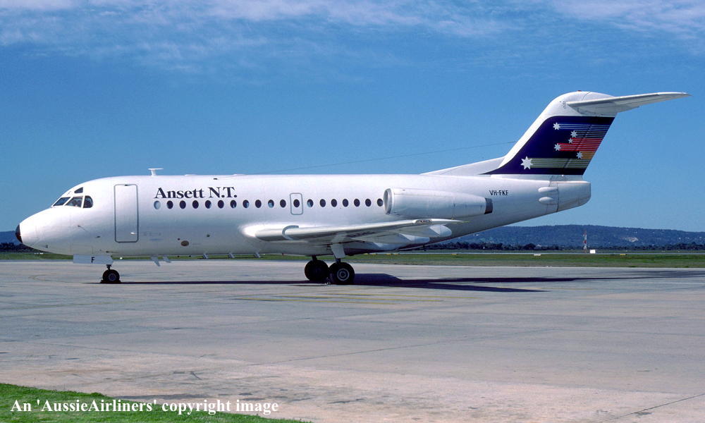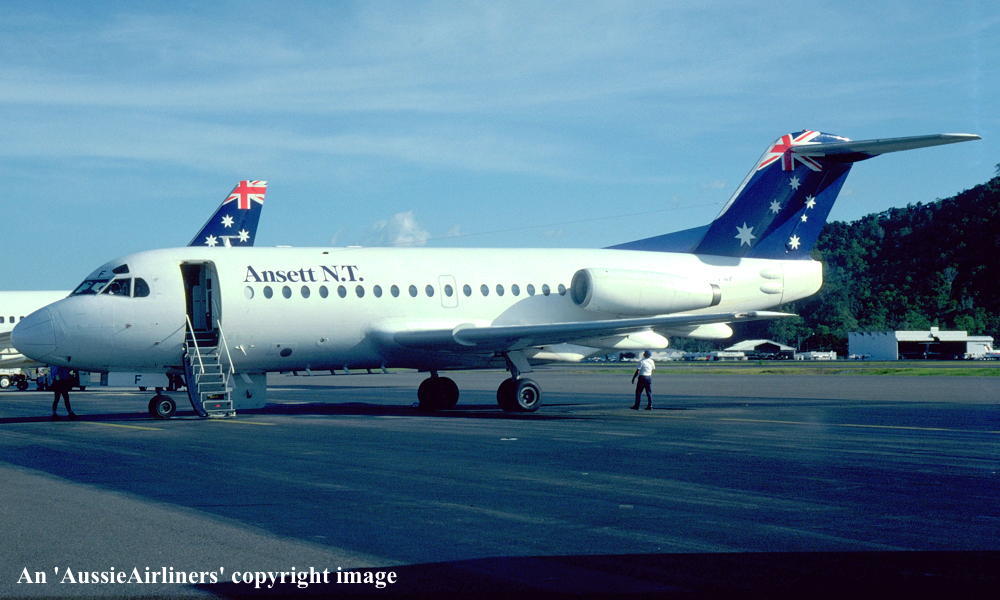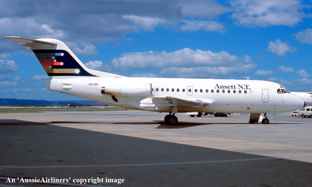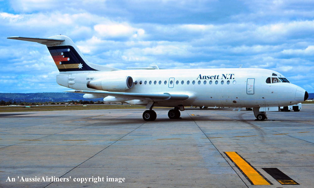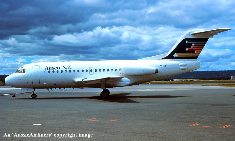 VH-FKF. Ansett N.T. - in the 'Southern Cross' livery at Perth Airport, March 21, 1986. (J. Goldfinch Copyright Image 1996-088.) |