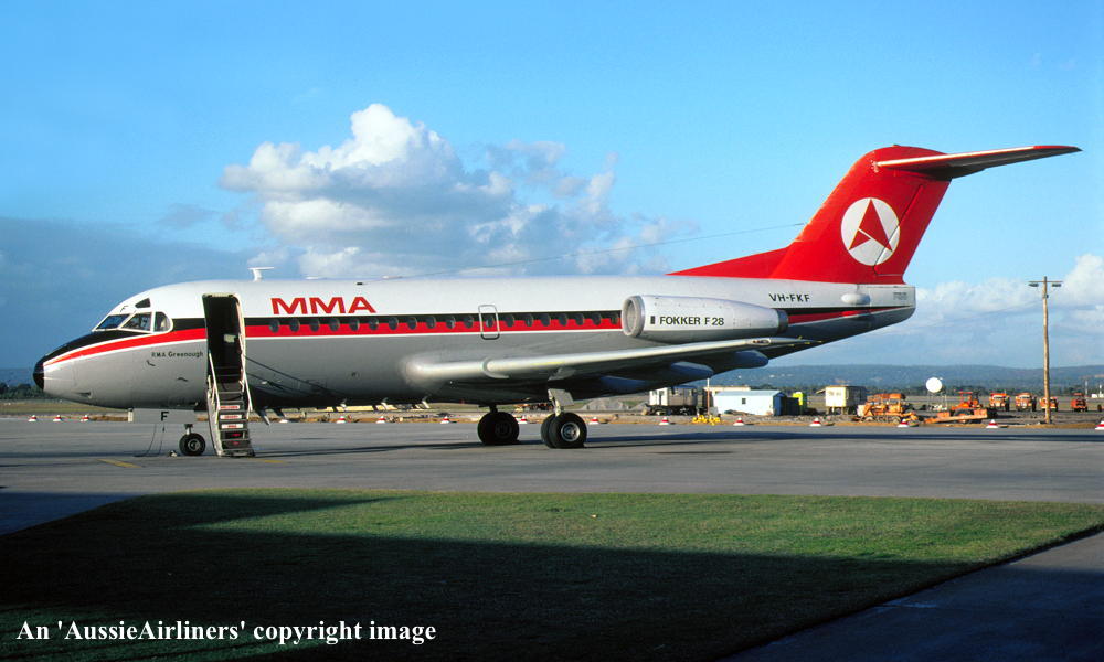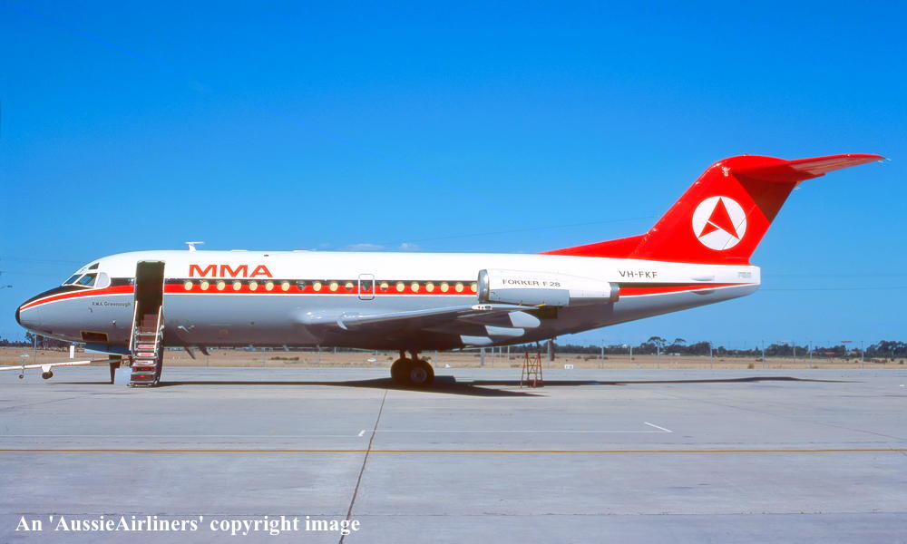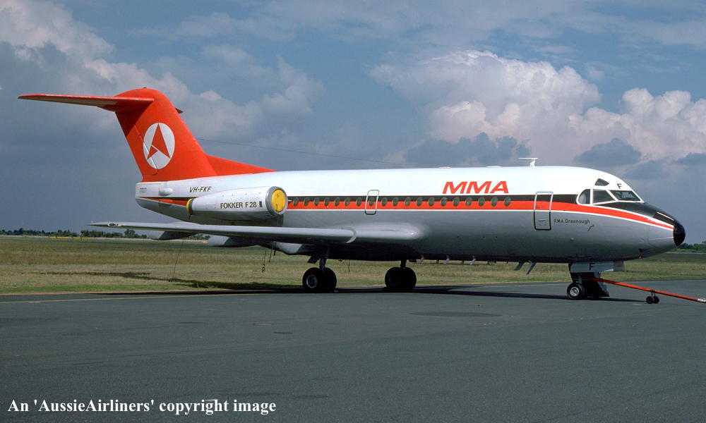 VH-FKF. Fokker F28-1007 Fellowship. c/n 11008. Was also registered as: PH-MAT. |