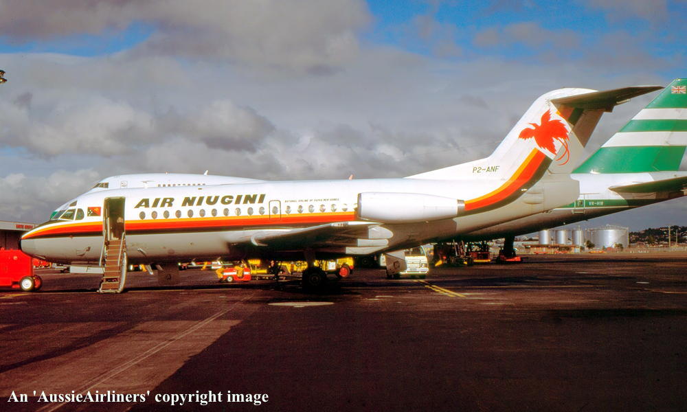 P2-ANF. Air Niugini - in the old livery at Brisbane Airport, August 1987. (R. N. Smith Collection Copyright Image 1995-320.) |