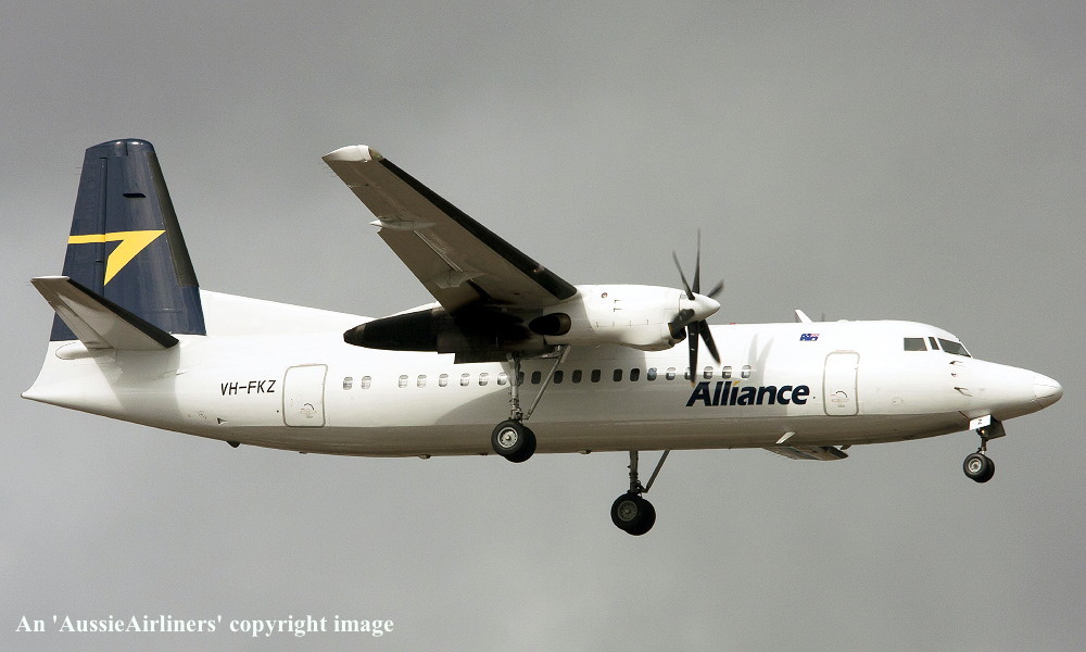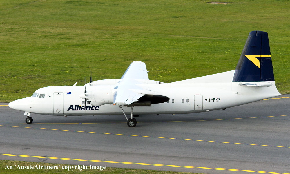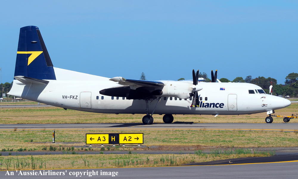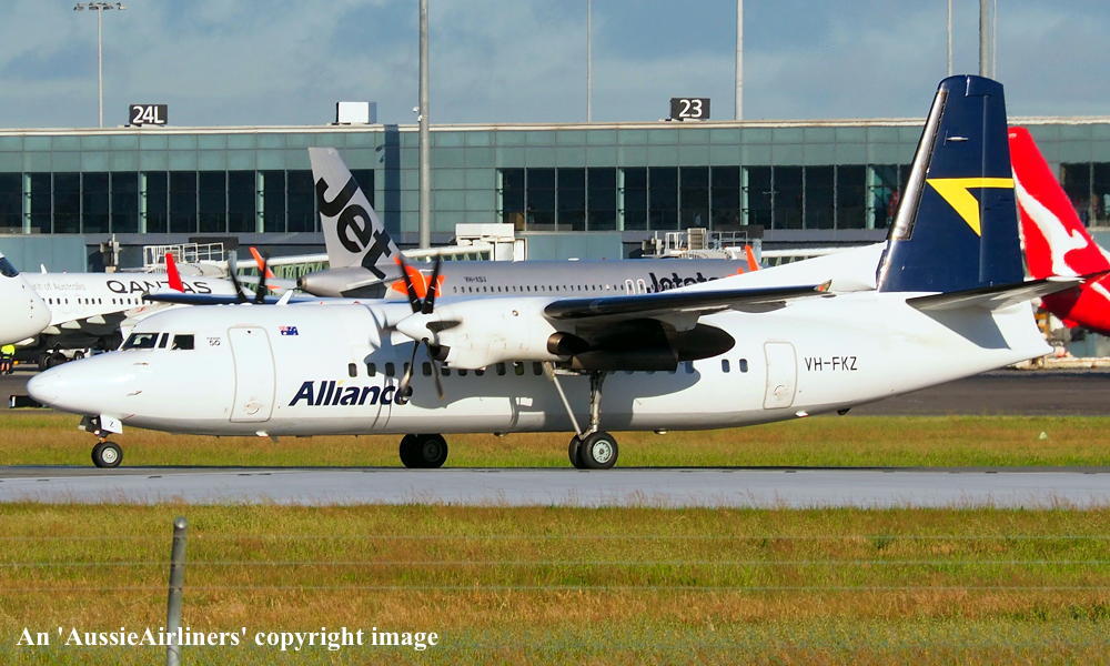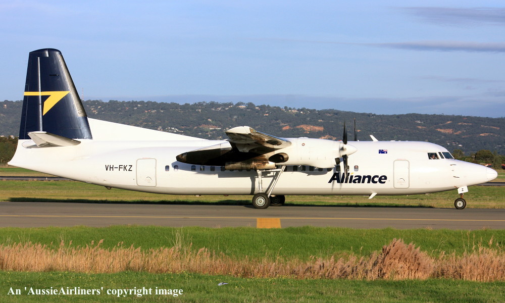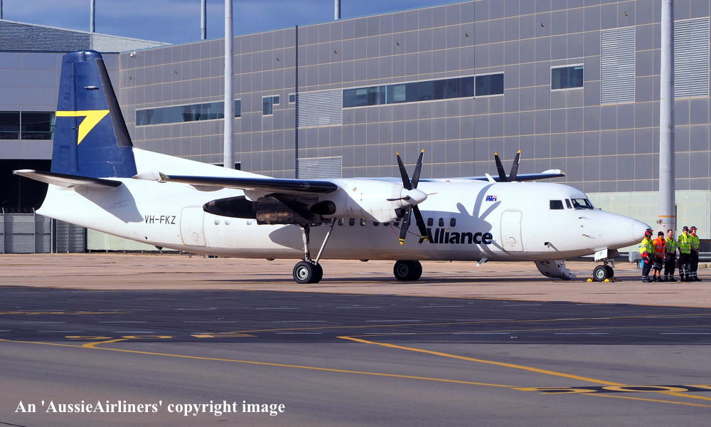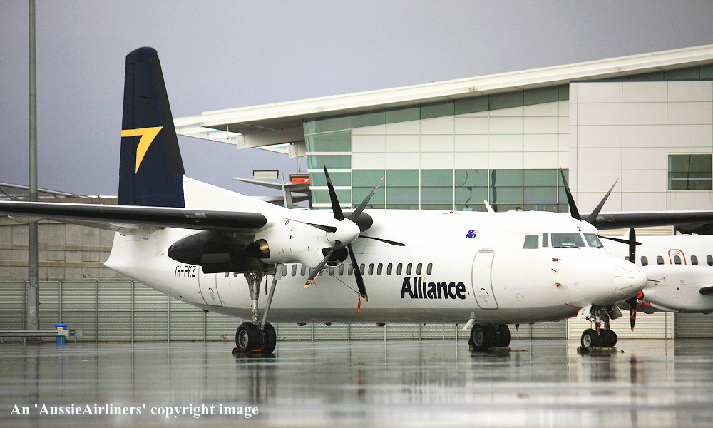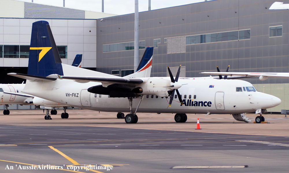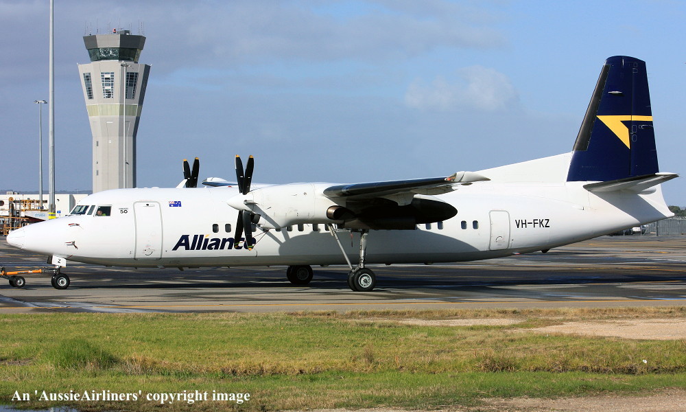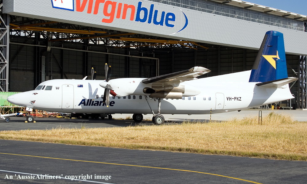 VH-FKZ. Alliance - in the standard livery at Brisbane Airport, April 2007. (R. N. Smith Collection Copyright Image 1997-104.) |