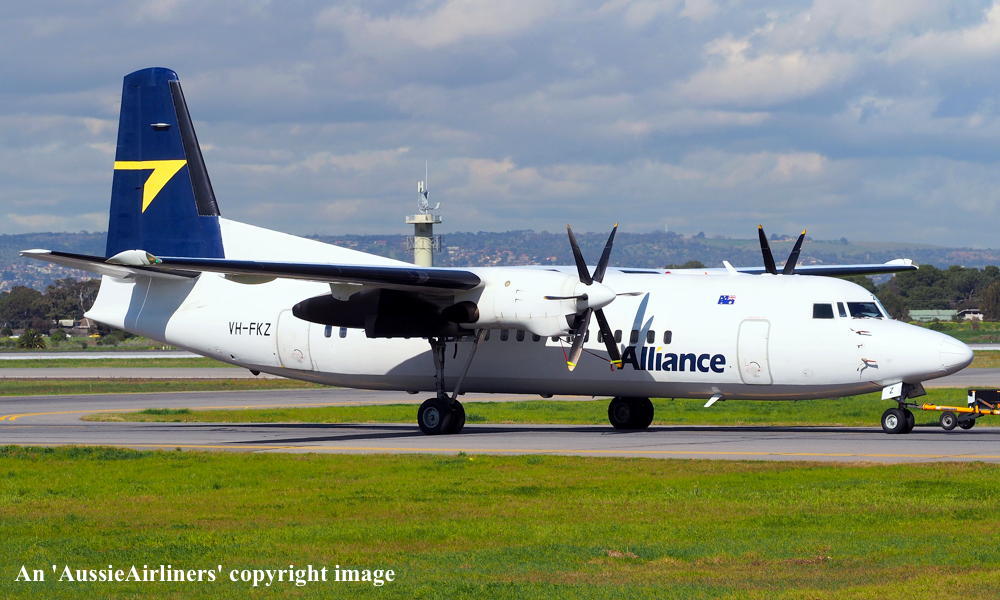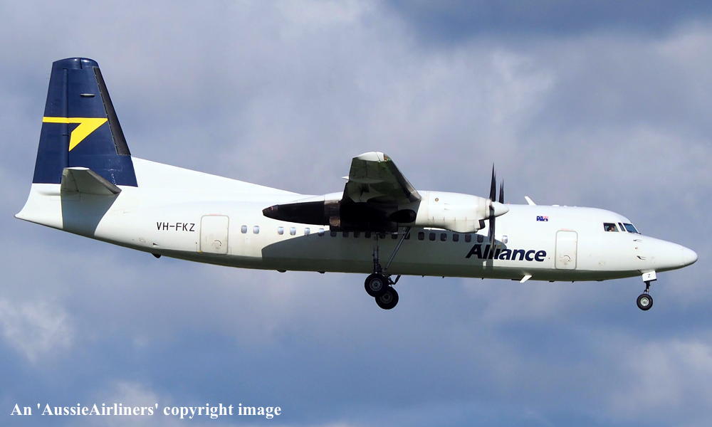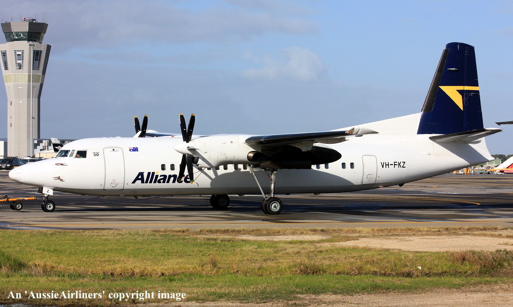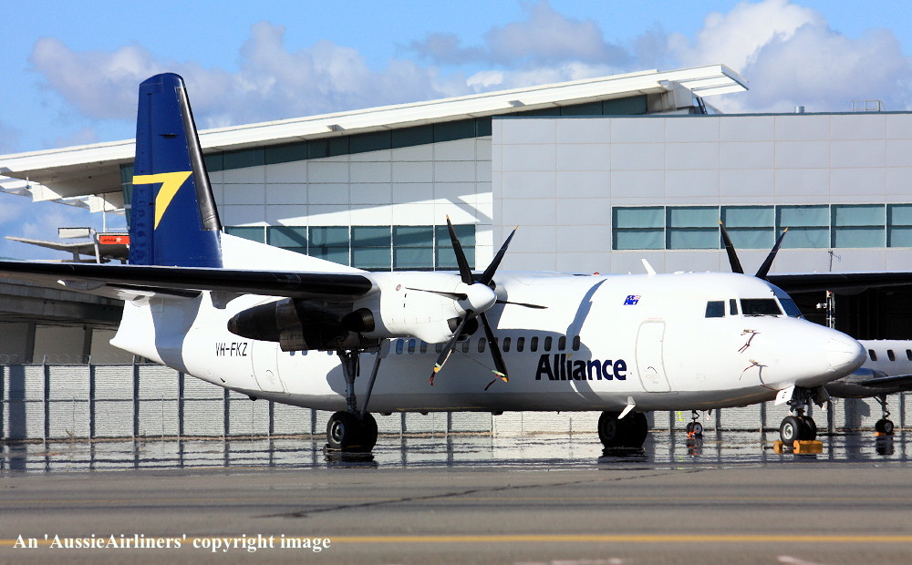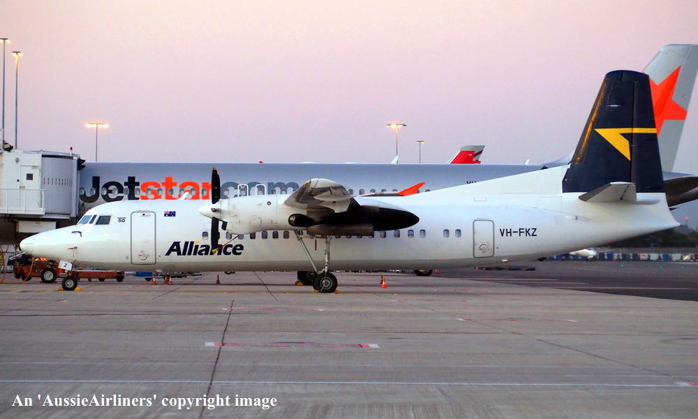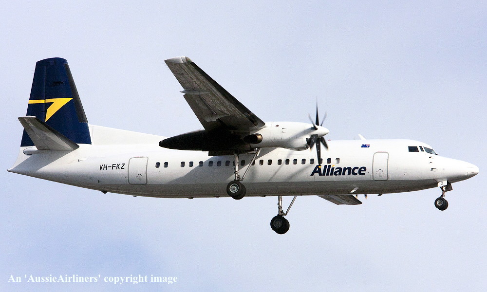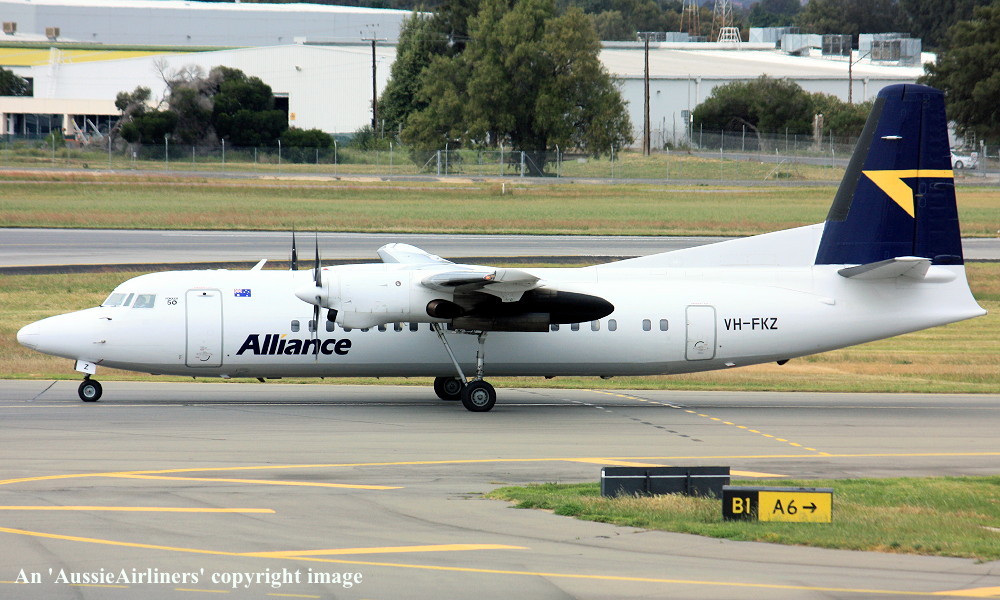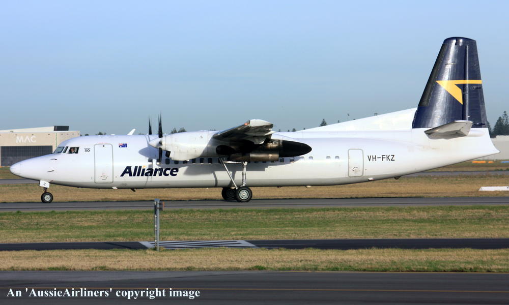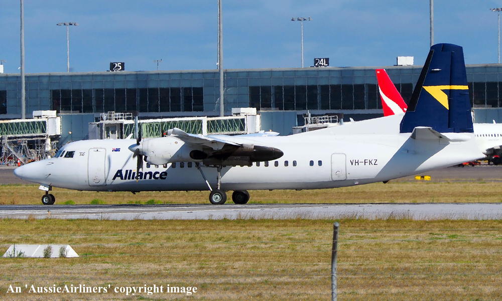 VH-FKZ. Alliance - in the standard livery at Brisbane Airport, April 2007. (R. N. Smith Collection Copyright Image 1997-104.) |