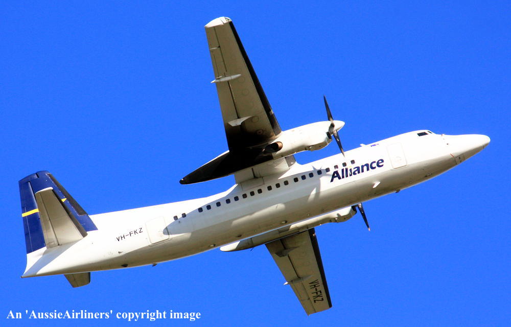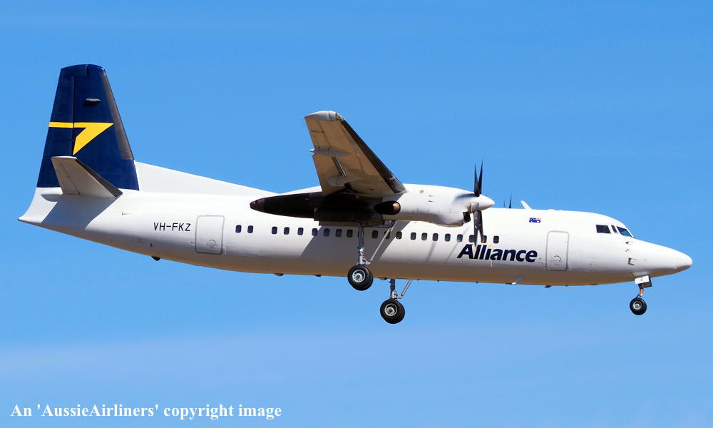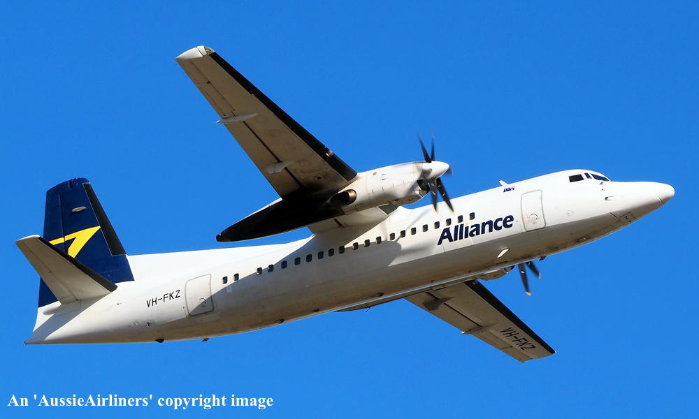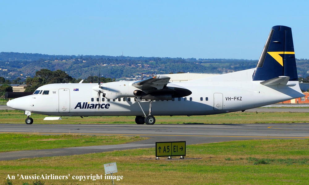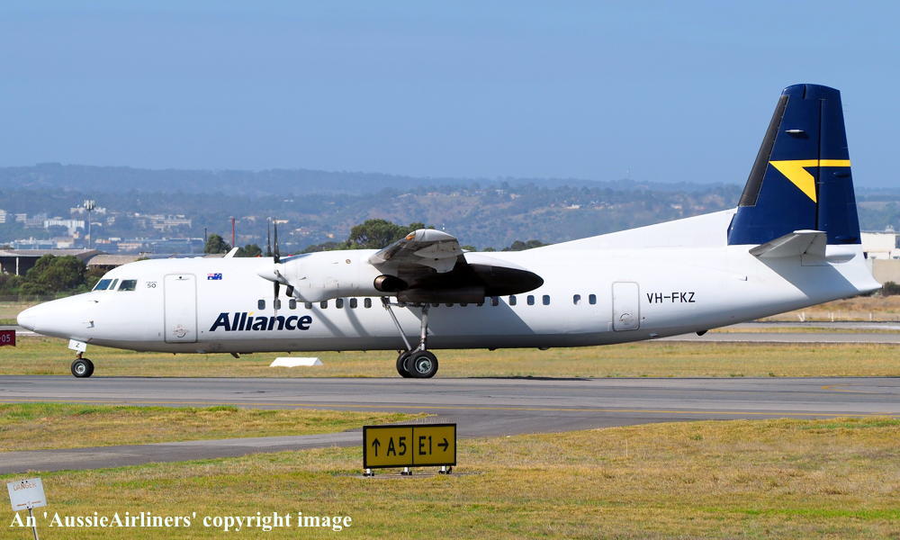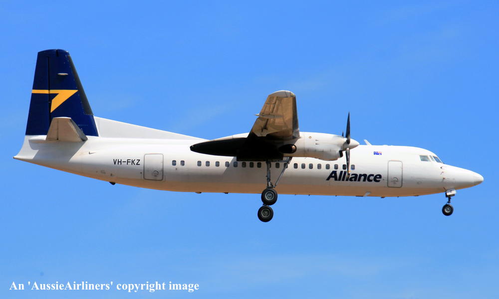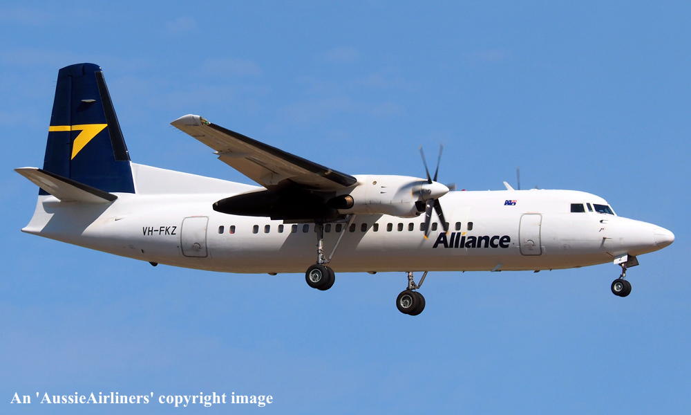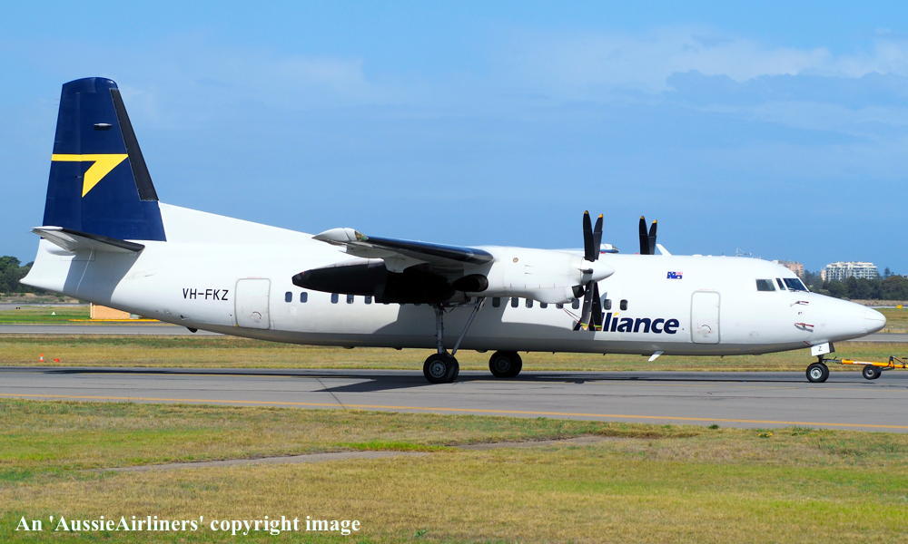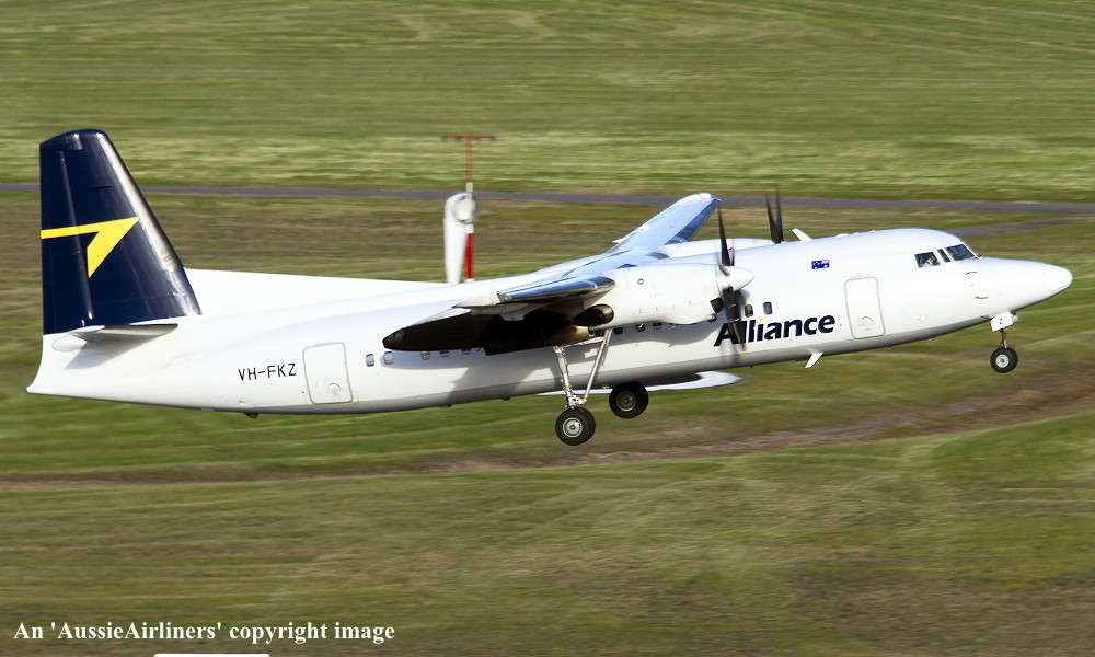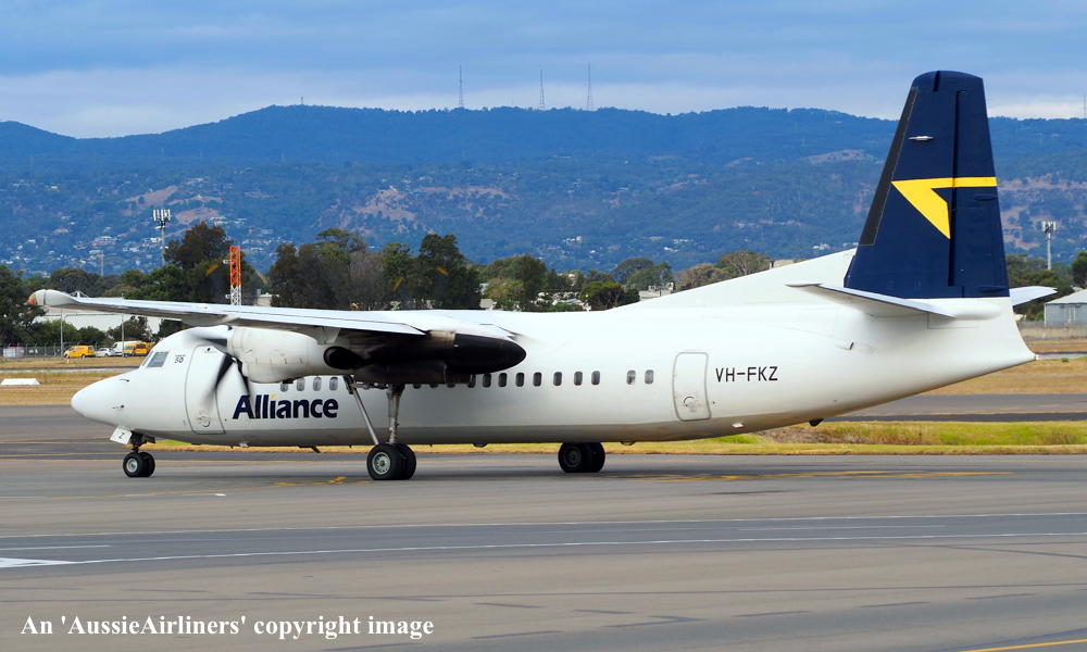 VH-FKZ. Alliance - in the standard livery at Brisbane Airport, April 2007. (R. N. Smith Collection Copyright Image 1997-104.) |