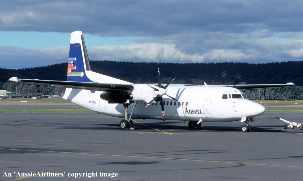 VH-FNB. Fokker F27-050. c/n 20107. Was also registered as: RP-C9993. |