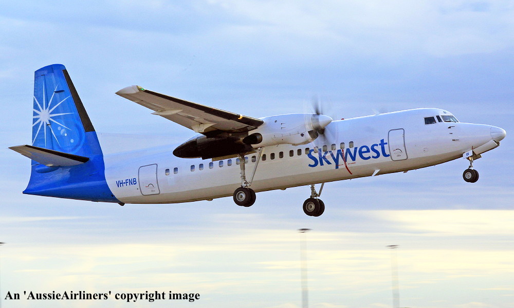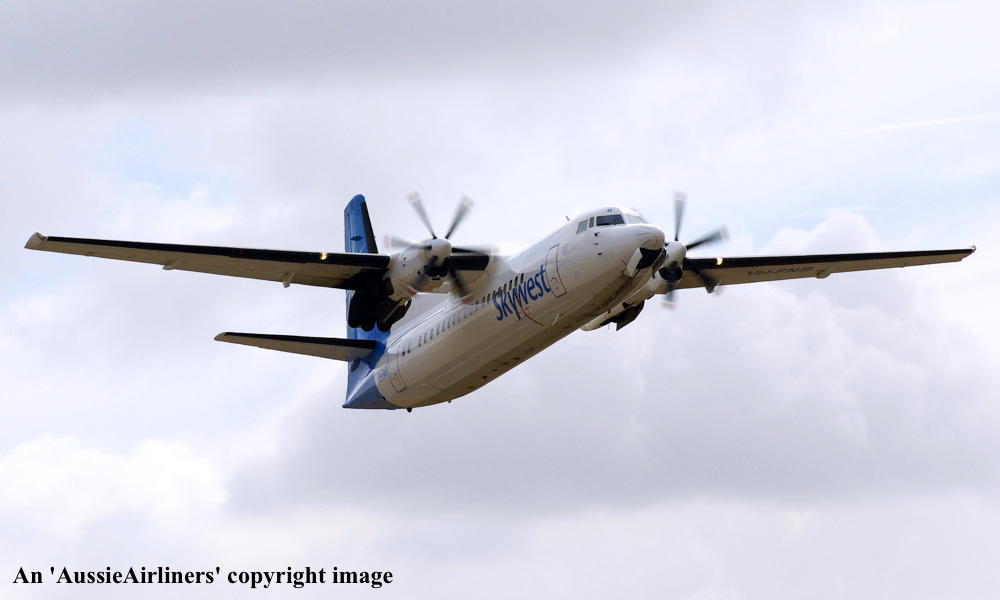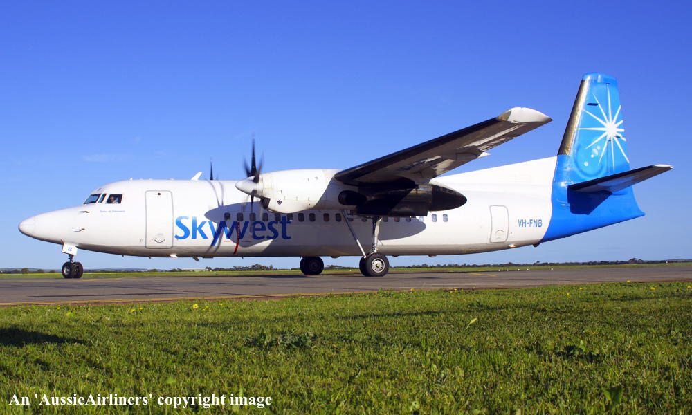 VH-FNB. Skywest - 'Shire of Esperance' in the standard livery at Perth Airport, August 31, 2012. (M. Lynam Copyright Image 1997-185.) |