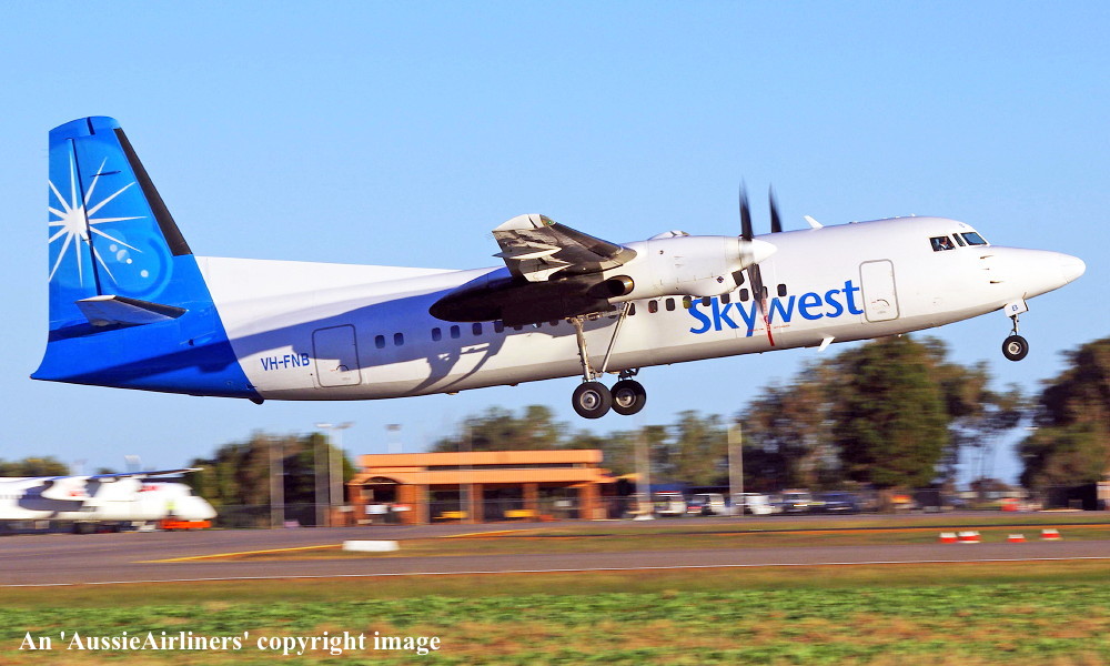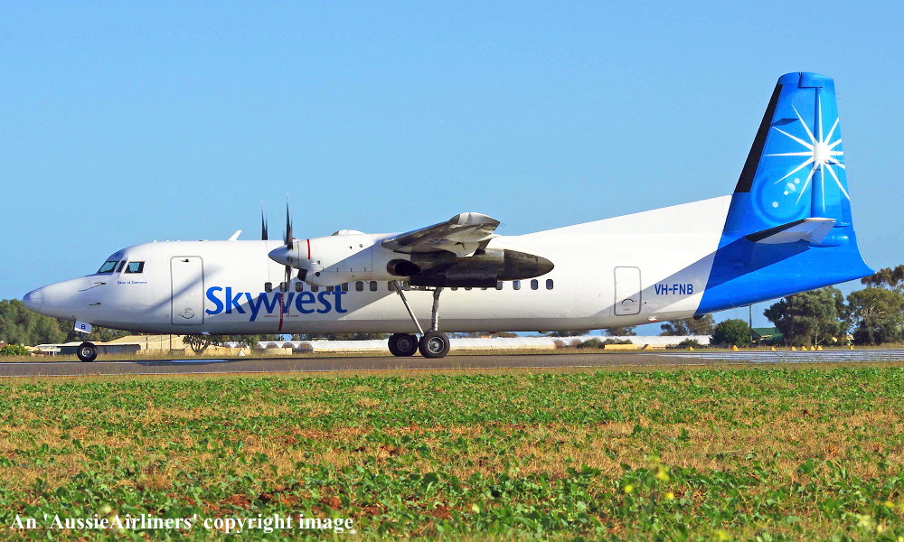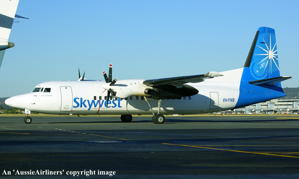 VH-FNB. Skywest - in the standard livery at Perth Airport, June 18, 2016. (J. A. Fox Copyright Image 1997-569.) |