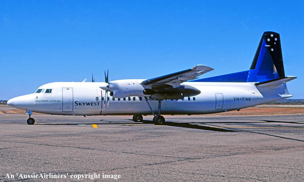 This was the second of ten aircraft ordered new by Ansett - February 13, 1985 Ansett was the launch customer for this aircraft type It was originally allocated c/n '10697' but was changed by Fokker when new c/n series was introduced for the F.27-050s The temporary export registration 'E-905 / PH-EXF' was reserved by Fokker Aircraft B.V. - November 21, 1986 First flown as 'PH-EXF' - October 16, 1987 The aircraft was cleared for export to Australia - October 27, 1987 Entered onto the Australian Aircraft Register as VH-FNB - October 27, 1987 Registered to JL Leasing Co. Ltd, Tokyo, Japan Leased to Ansett Transport Industries (Operations) Pty Ltd, Melbourne as the registered operartor Accepted by Ansett at Amsterdam (Schiphol) - October 27, 1987 This aircraft was configured to seat 50 passengers Departed Amsterdam (Schiphol) on the delivery flight to Australia as AN50 - October 28, 1987 It arrived at Sydney (Kingsford Smith) on completion of the delivery flight from The Netherlands - November 03, 1987 Delivery route: Amsterdam - Athens - Cairo - Bahrain - Karachi - Calcutta - Bangkok - Seletar - Denpasar - Darwin - Mt Isa - Sydney Flight crew: Captains K. Duncan, B. D. Sexton, N. J. Fitzpatrick; LAMEs P. Coulls, B. Kay, I James; Captain J. Wood (Dept of Communications & Transport) It was delivered in the standard 'Ansett' livery Operated its first revenue service Sydney (Kingsford Smith) - Maroochydore (Captain T. Daff) - November 21, 1987 Air N. S. W. was renamed Ansett N. S. W. - March 01, 1990 Ansett N. S. W. was renamed Ansett Express - November 28, 1990 Commenced Ansett Express services on the Sydney - Canberra - Sydney route - April 08, 1991 It was used mainly on the Sydney - Canberra - Melbourne shuttle services Operated its last Ansett Express Shuttle service Sydney (Kingsford Smith) - Canberra - Sydney - July 21, 1991 Withdrawn from Ansett service and placed in storage at Melbourne (Tullamarine) - July 28, 1991 Returned to service with Ansett Express - March 21, 1992 Ferried Sydney - Brisbane on wet leased to Flight West Airlines to cover for DHC-8 VH-XFU - January 20, 1993 The DHC-8 had been leased to Ansett New Zealand Operated its first Flight West revenue service as YC6008 - January 21, 1993 Route: Brisbane - Gladstone - Rockhampton - Mackay - Townsville - Cairns Operated its final Flight West revenue service - March 11, 1993 Ferried Brisbane - Sydney (Kingsford Smith) on return to Ansett - March 12, 1993 Returned to service with Ansett Express - March 21, 1993 The aircraft had flown 8,393 hours with 9,781 cycles - June 30, 1993 Transferred to Ansett Australia when Ansett Express services merged with the parent airline - October 30, 1993 Withdrawn from service - December 1995 Ferried Melbourne (Tullamarine) - Perth for lease to Skywest Airlines - December 31, 1995 It operated its first Skywest revenue service - January ?, 1996 Registered to Skywest Airlines Pty Ltd - April 30, 1996 Operated its last Skywest revenue service Karratha - Perth as AN6570 - September 13, 2001 Ansett suspended all operations due to bankruptcy - September 13, 2001 Returned to service under administration operating Perth - Esperance as AN7601 - September 23, 2001 Skywest Airlines was sold to Airline Investments Ltd - February 21, 2002 Repainted at Perth into the standard Skywest livery - August 2004 The aircraft was named 'Shire of Esperance' at a naming ceremony at Esperance - December 14, 2005 Registered to Skywest Airlines (Australia) Pty Ltd - March 14, 2006 Virgin Australia announced its intention to acquire Skywest Airlines - October 30, 2012 Ferried Perth - Denpasar - Seletar of overhaul - March 13, 2013 Virgin Australia finalised the acquisition of Skywest Airlines - April 11, 2013 Ferried Seletar - Bali - Perth (22:04 local) on completion of the overhaul - April 29, 2013 Returned to service in the standard Skywest livery Perth - Windarling Mine - April 30, 2013 Operated its final revenue service Esperance - Perth - October 23, 2015 The aircraft was withdrawn from service and stored at Perth having flown 51,449 hours with 46,425 cycles This aircraft can be returned to service if required with 24 hours notice The aircraft required a Heavy Maintenance check by - November 21, 2015 As no heavy maintenance check is planned due to the cost and a downturn in aircraft capacity requirements this aircraft may never fly again The aircraft was stored at Perth Registered to Aero-Pioneer Group - August 2016 It was officially sold to Aero-Pioneer Group - September 23, 2016 Test flown Perth - Perth -September 20, 2016 Registered to APU Investors LLC, Delaware, United States - October 21, 2016 Leased to JMC Investments Pty Ltd, Hamilton, Victoria as the registered operator Departed Perth (08:54 local) on the ferry flight to Singapore (Seletar) as SYU1608 - December 21, 2016 It arrived at Singapore (Seletar) on completion of the ferry flight - December 22, 2016 Ferry route: Perth - Jakarta (Halim - fuel stop) - Singapore It was observed stored at Singapore (Seletar) with 'VH-FNH' - April 05, 2017 It was reported that both 'VH-FNB' and 'VH-FNH' had been offered for immediate sale - June 13, 2017 It was reported that 'VH-FNA' - 'VH-FNB' - 'VH-FND' and 'VH-FNH' had been sold to Mayair - September 25, 2017 However no maintenance had been carried out on this aircraft since its arrival from Australia Cancelled from the Australian Aircraft Register - October 09, 2018 Confirmed Leading Edge Air Services Corporation (Leascor), Philippines had purchased the aircraft - October 17, 2018 It was reported (F. Crampton) that this aircraft would be parted out to provide the nessary spares to enable 'VH-FNH' to enter service with Leascor - March 16, 2019 Entered onto the Philippines Aircraft Register as RP-C9993 - March 19, 2019 Registered to Leading Edge Air Service Corporation It was reported (F. Crampton) that this aircraft would be made airworthy and ferried to Manilla - April 03, 2019 Test flown Singapore - Singapore - May 16,