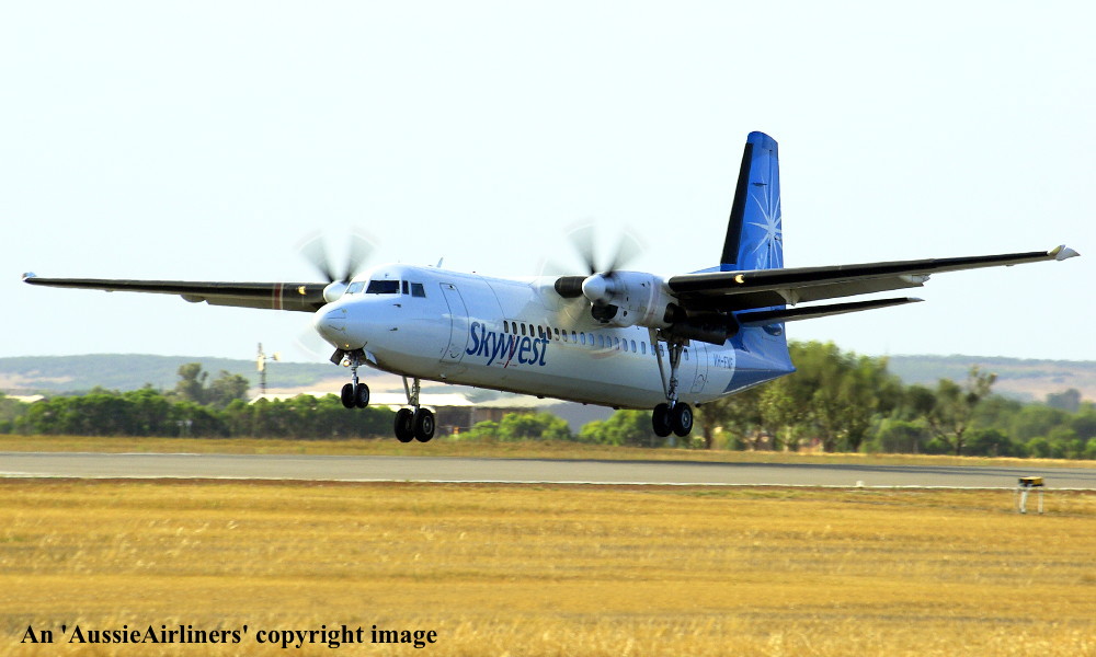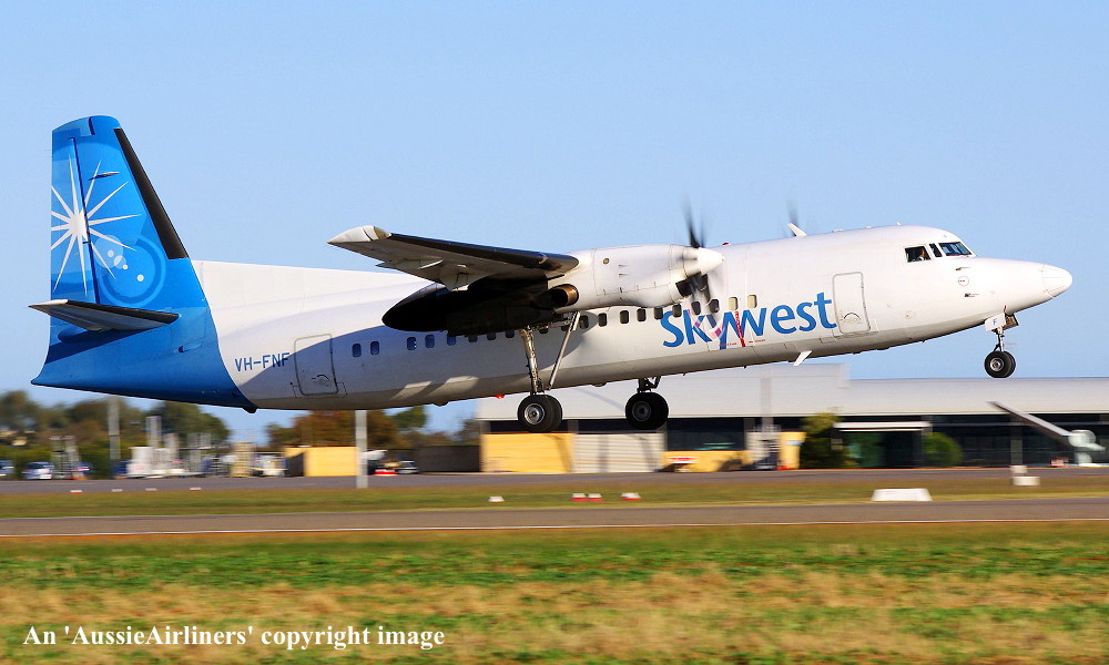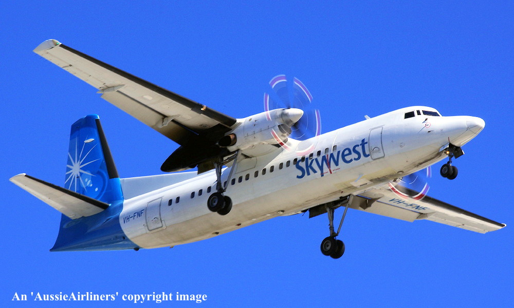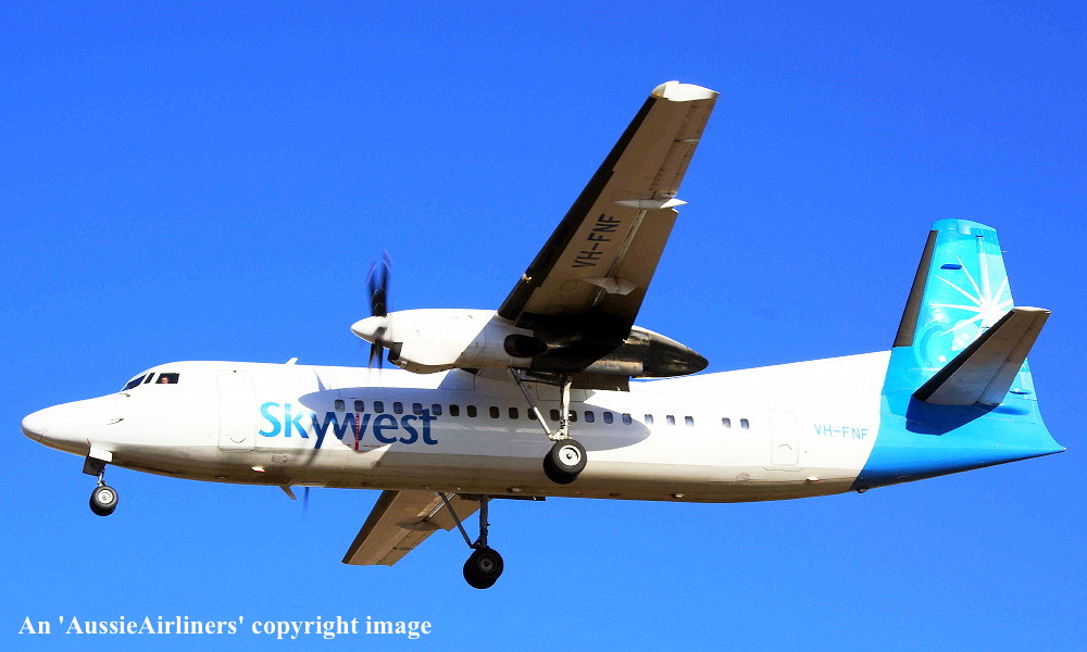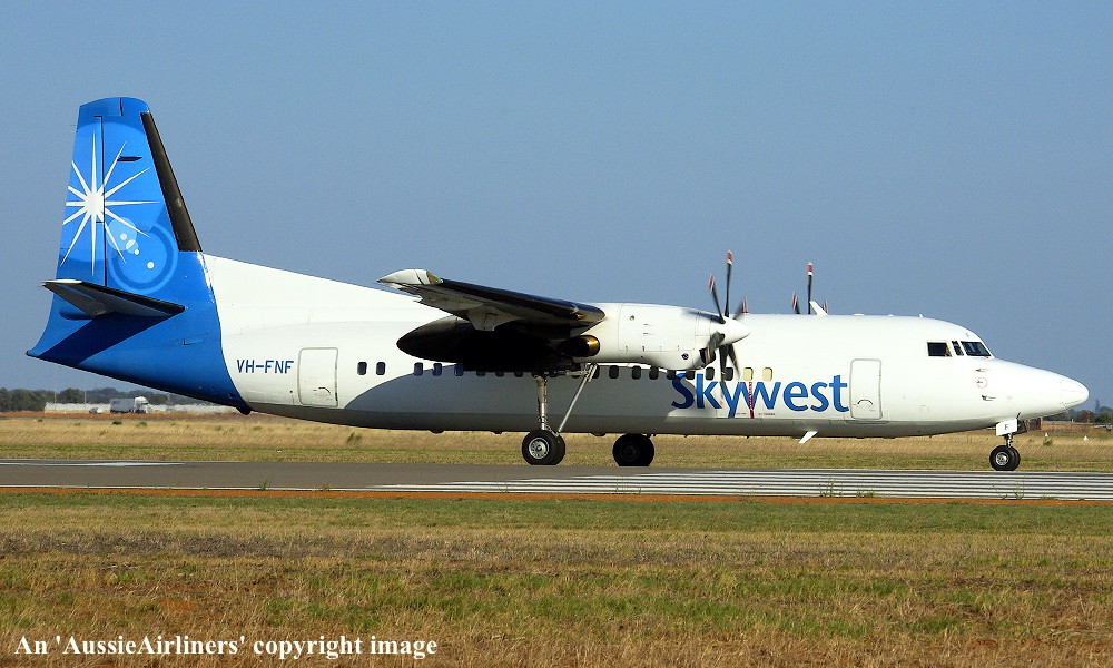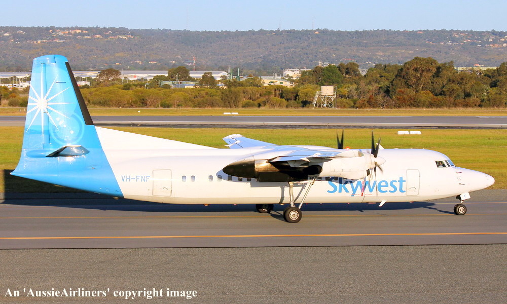 VH-FNF. Skywest - in the standard livery at Perth Airport, July 18, 2012. (M. Lynam Copyright Image 1997-197.) |