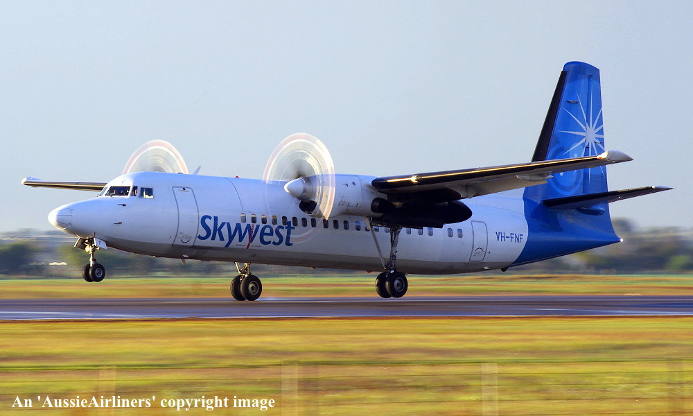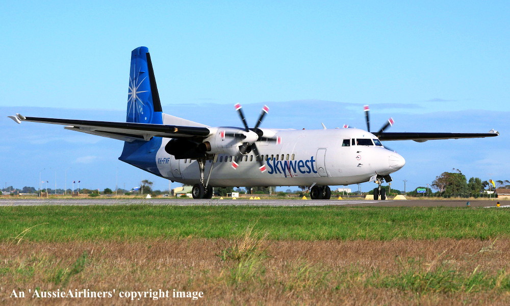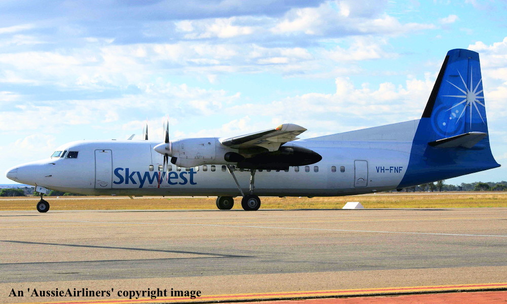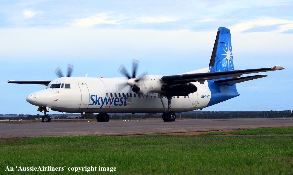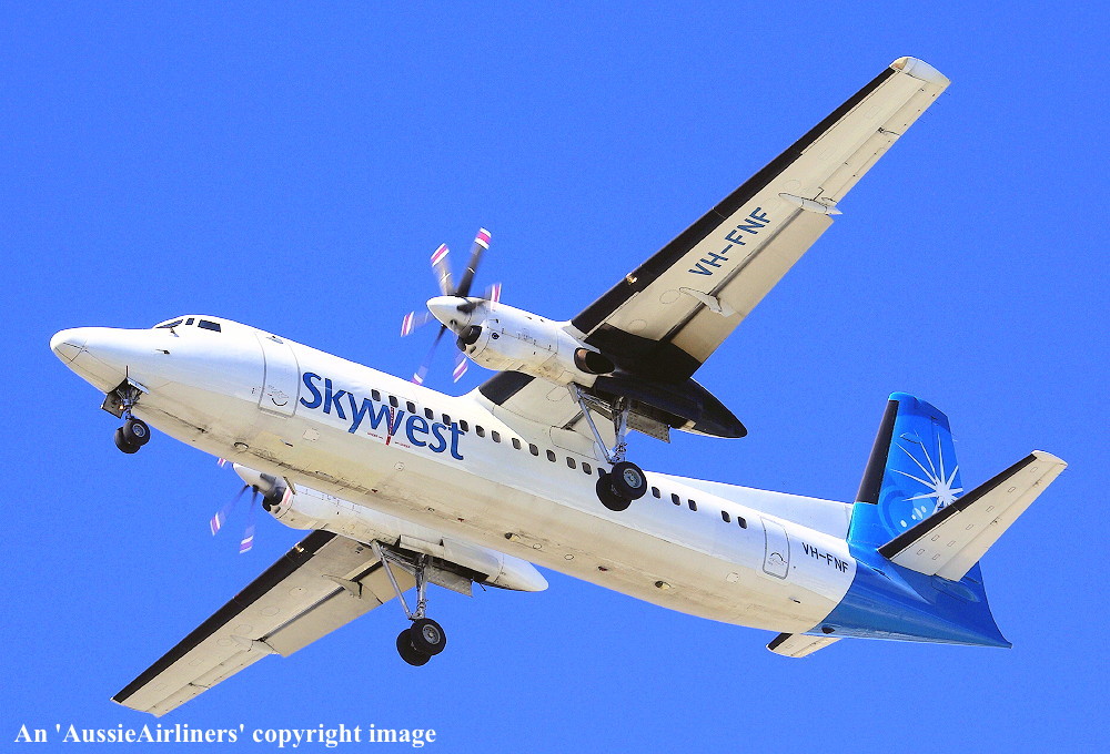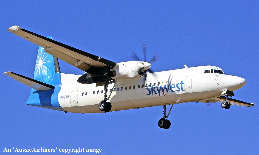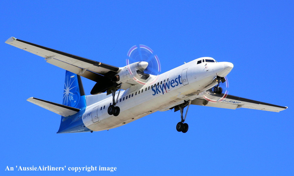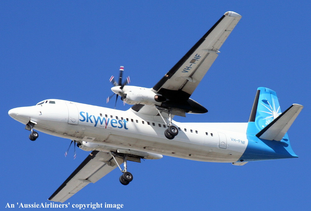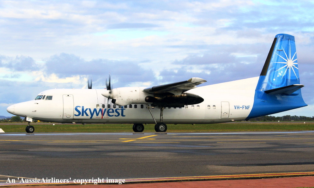 VH-FNF. Skywest - in the standard livery at Perth Airport, August 30, 2012. (M. Lynam Copyright Image 1997-187.) |