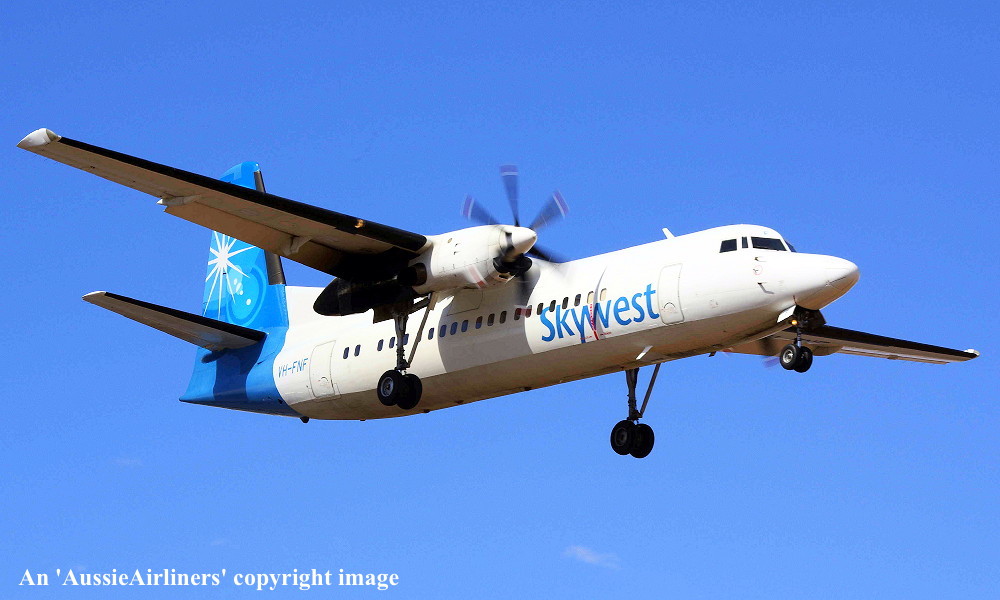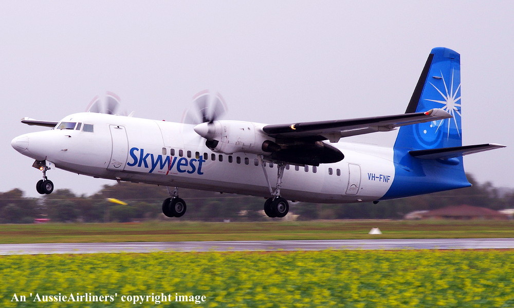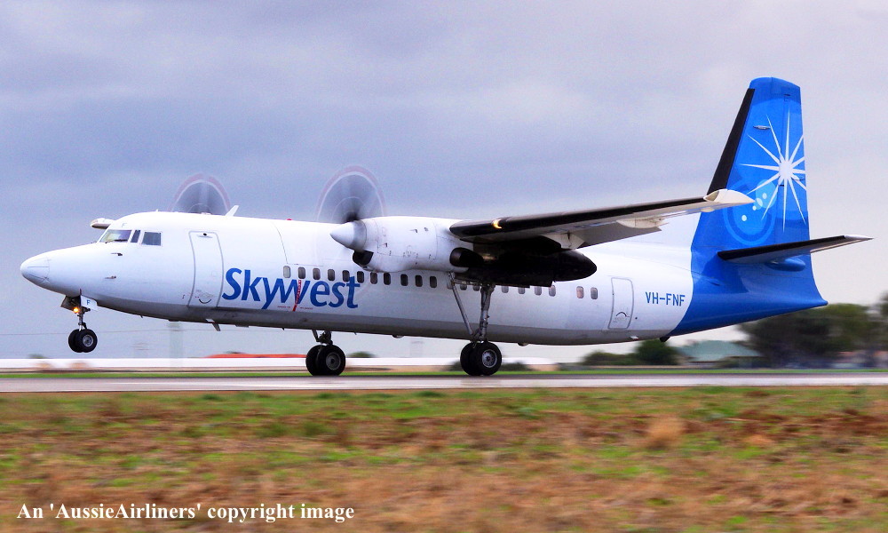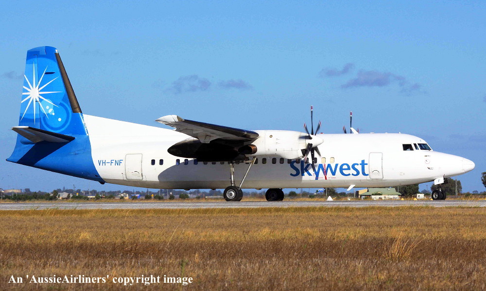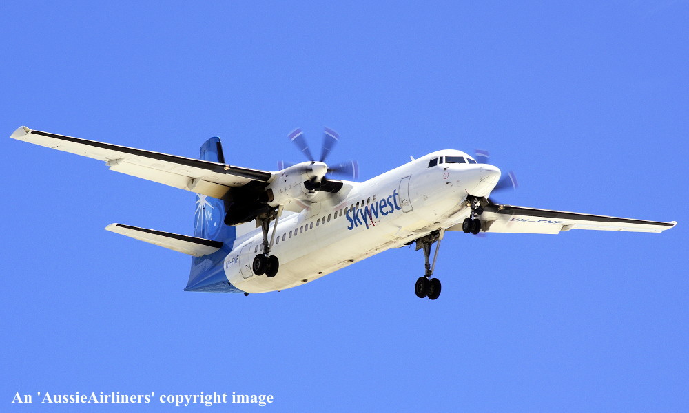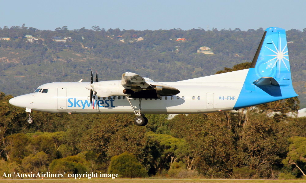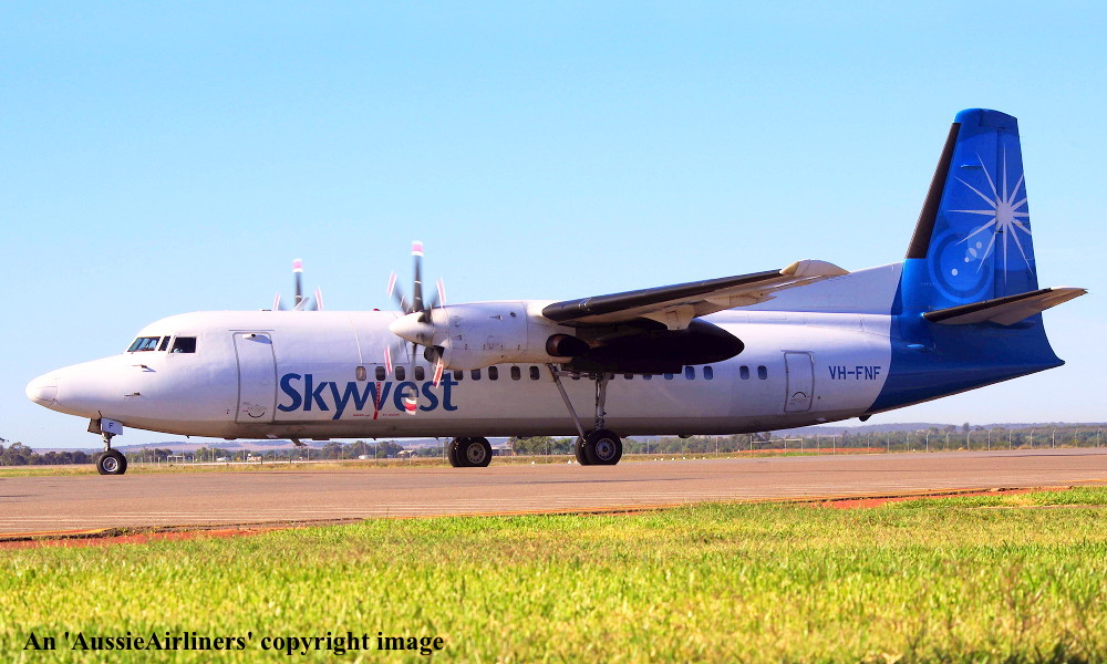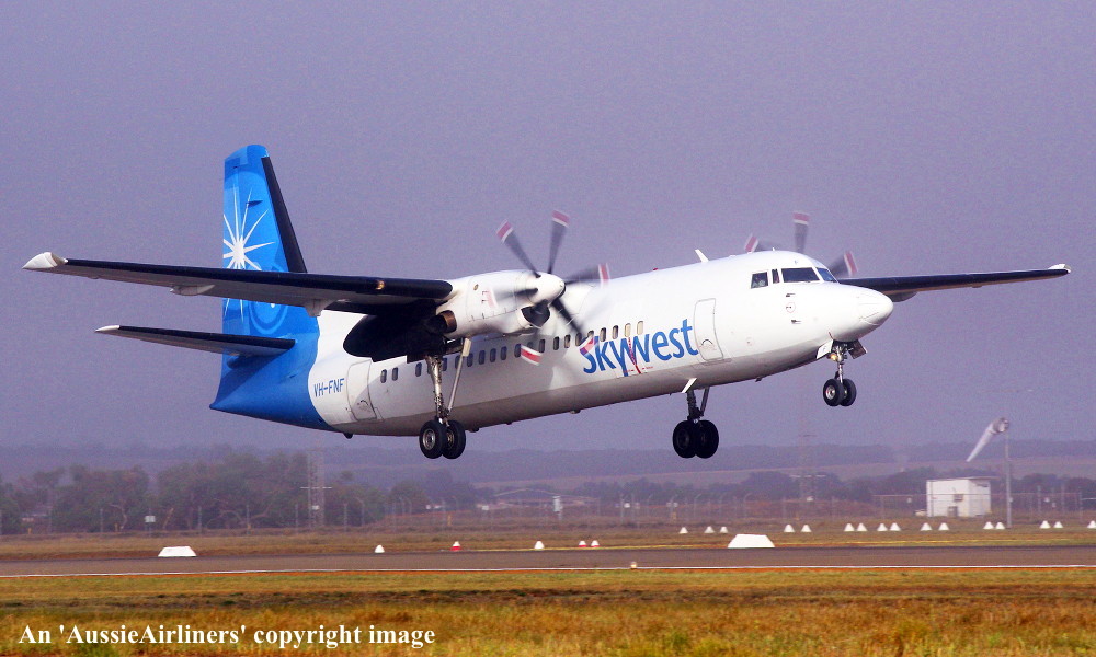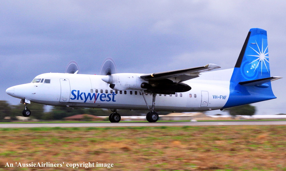 VH-FNF. Skywest - in the standard livery at Perth Airport, August 30, 2012. (M. Lynam Copyright Image 1997-187.) |