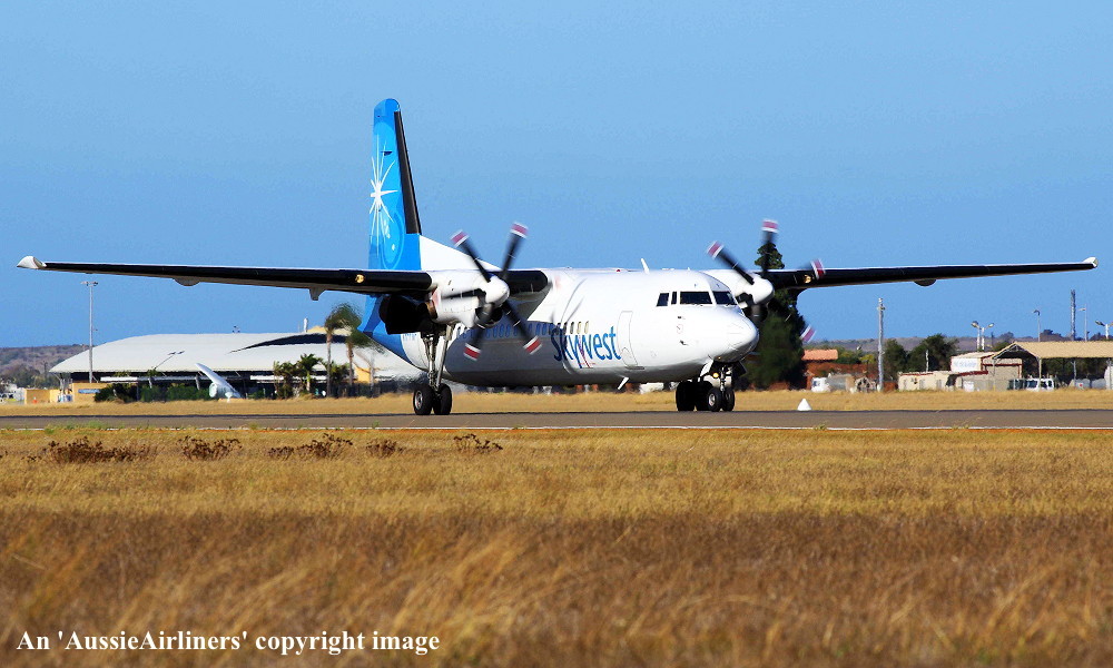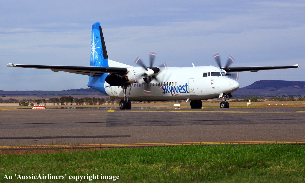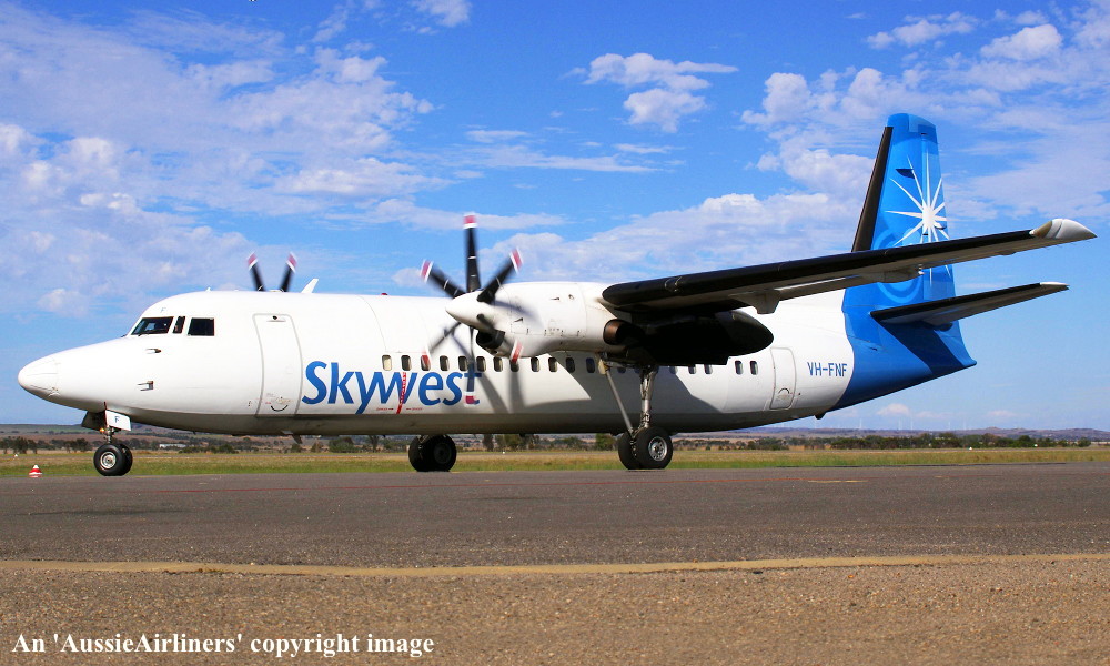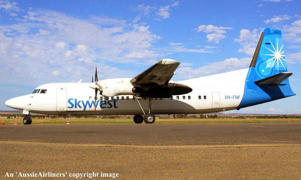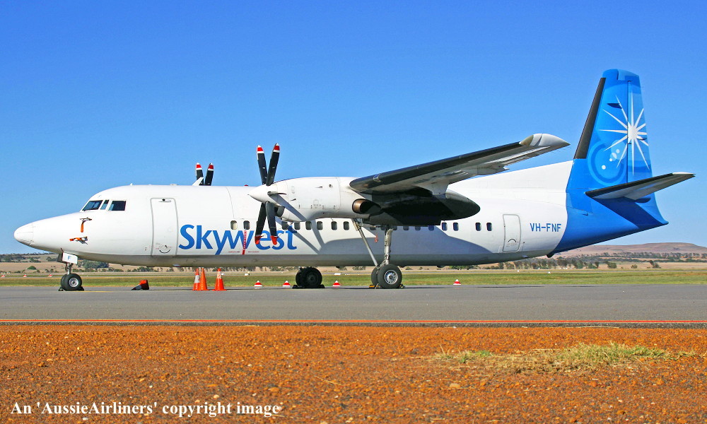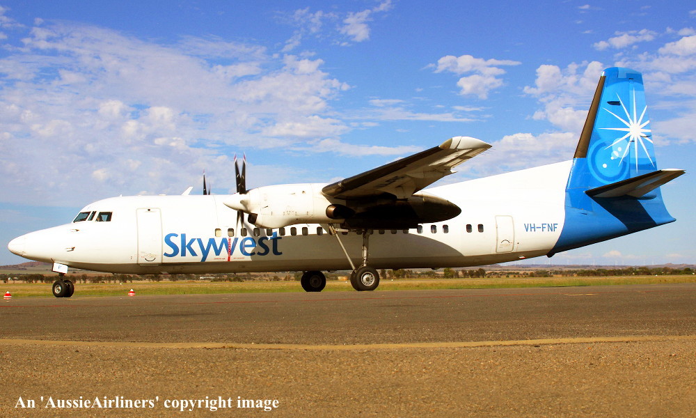 VH-FNF. Skywest - in the standard livery at Geraldton Airport, March 12, 2013. (R. N. Smith Collection Copyright Image 1997-223.) |