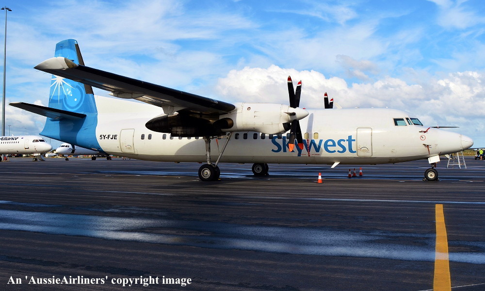 5Y-FJE. Skywest - in the standard livery at Perth Airport, June 04, 2016. (J. A. Fox Copyright Image 1997-562.) |