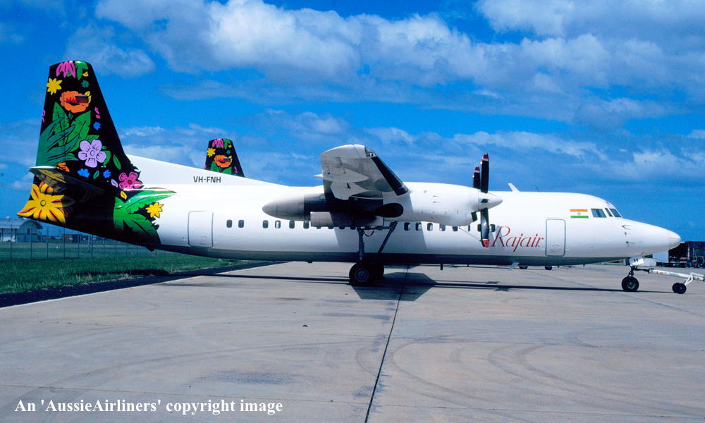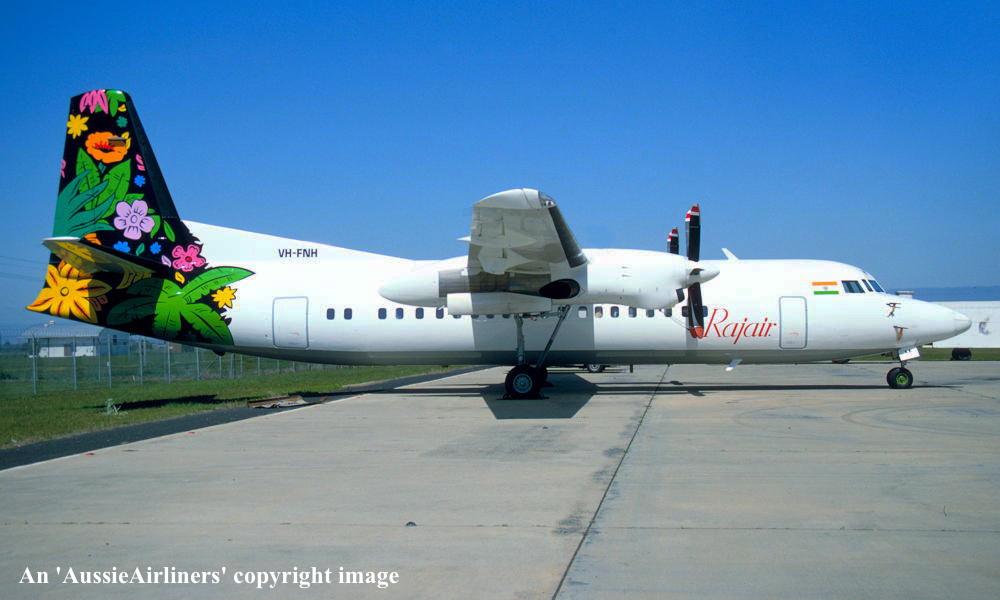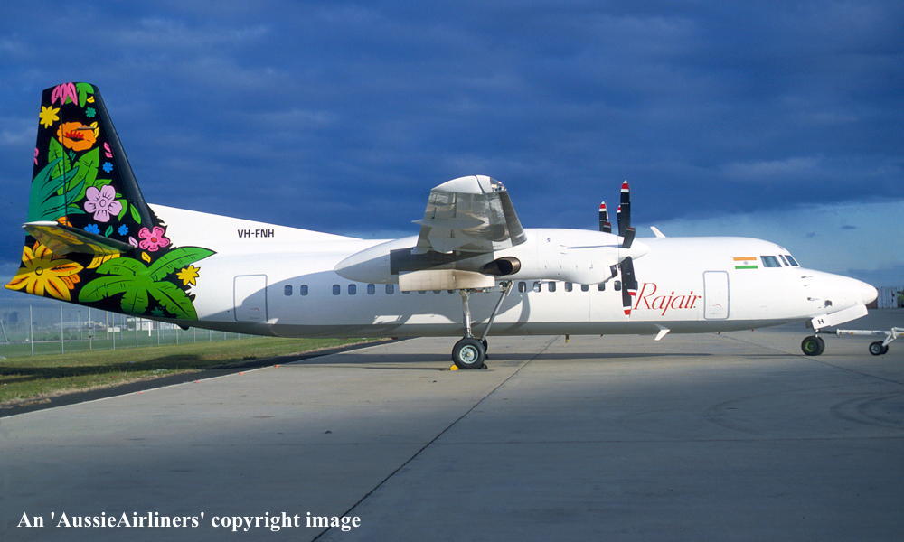 VH-FNH. Rajair - in the standard livery at Melbourne Tullamarine Airport, September 1993. (G. Bennett Copyright Image 1997-039.) |
