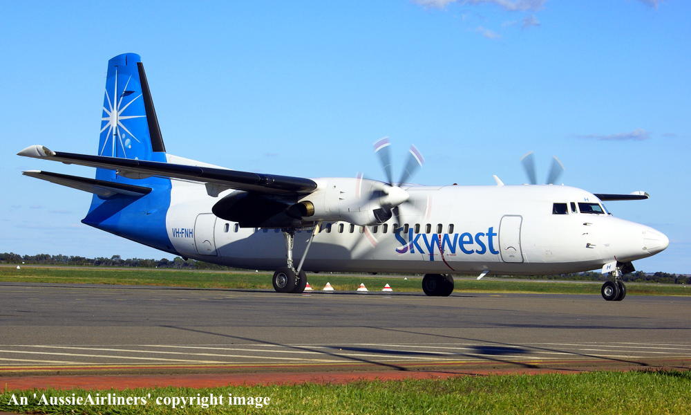 VH-FNH. Skywest - 'Shire of Carnarvon' in the standard livery at Perth Airport, January 24, 2012. (M. Lynam Copyright Image 1997-198.) |