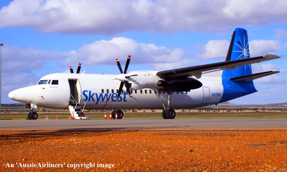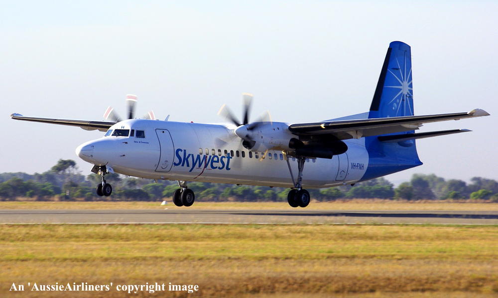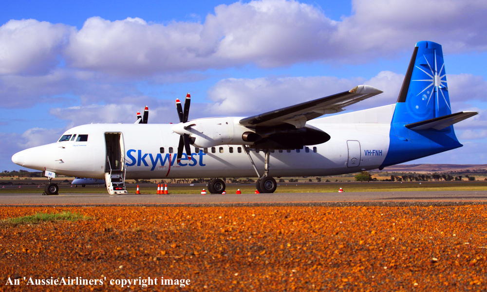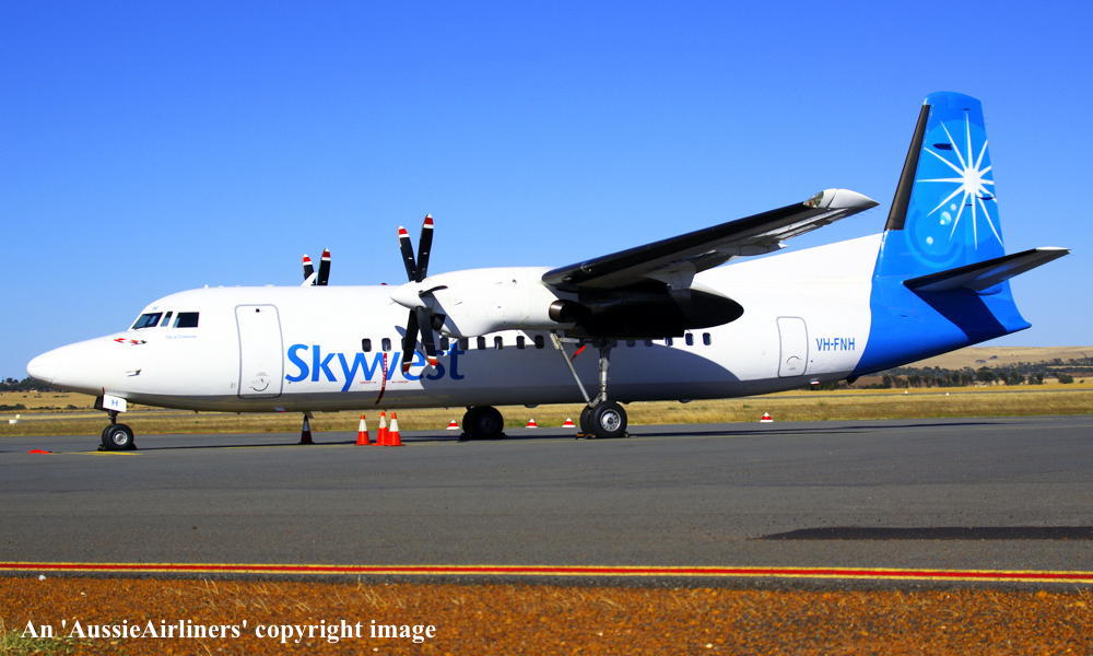 VH-FNH. Skywest - 'Shire of Carnarvon' in the standard livery at Perth Airport, September 06, 2010. (R. N. Smith Collection Copyright Image 1997-481.) |