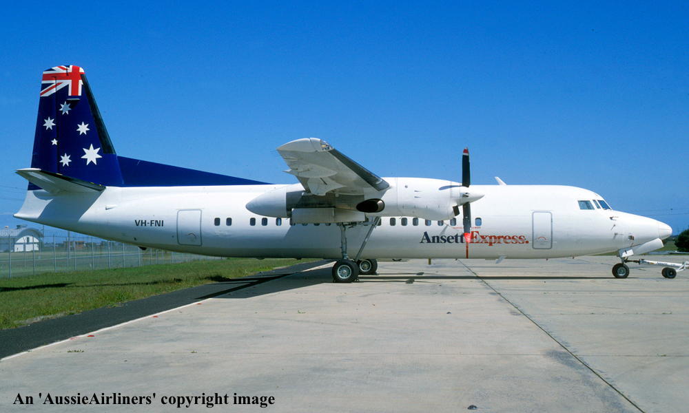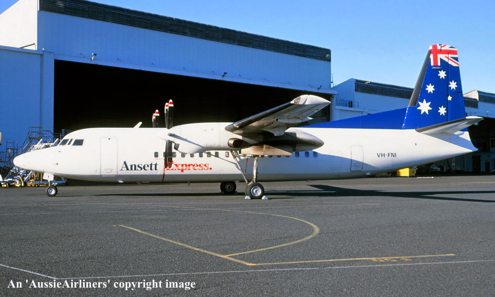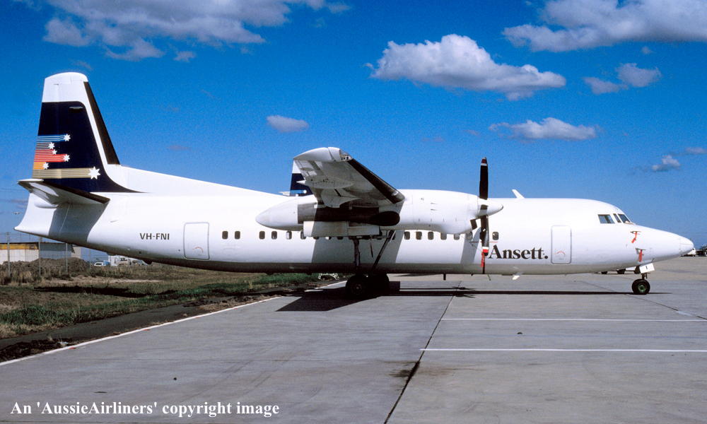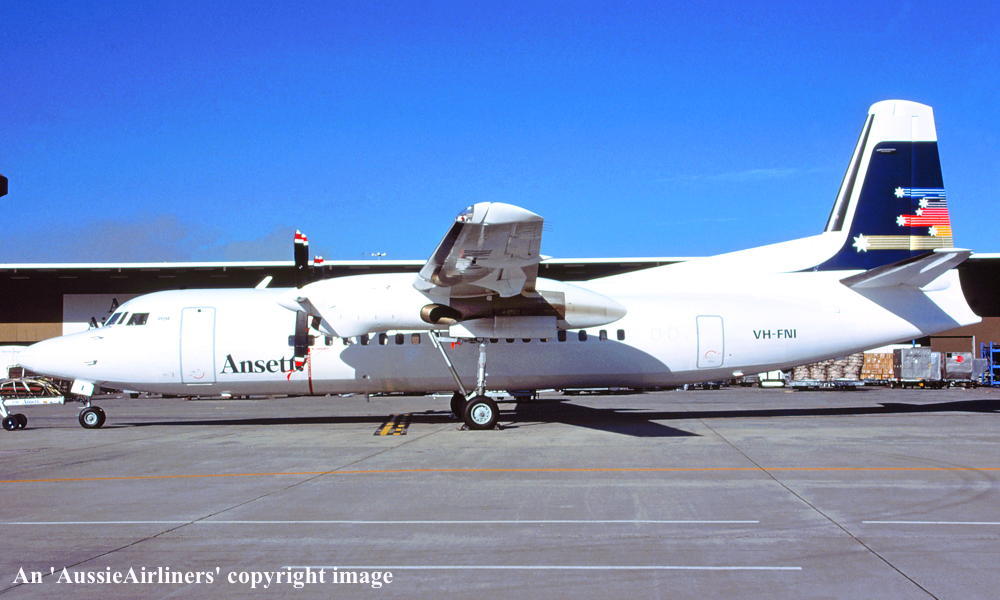 VH-FNI. Fokker F27-050. c/n 20114. Was also registered as: 5Y-CHK. |
