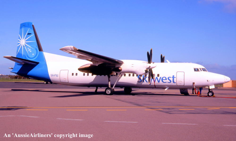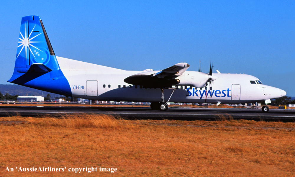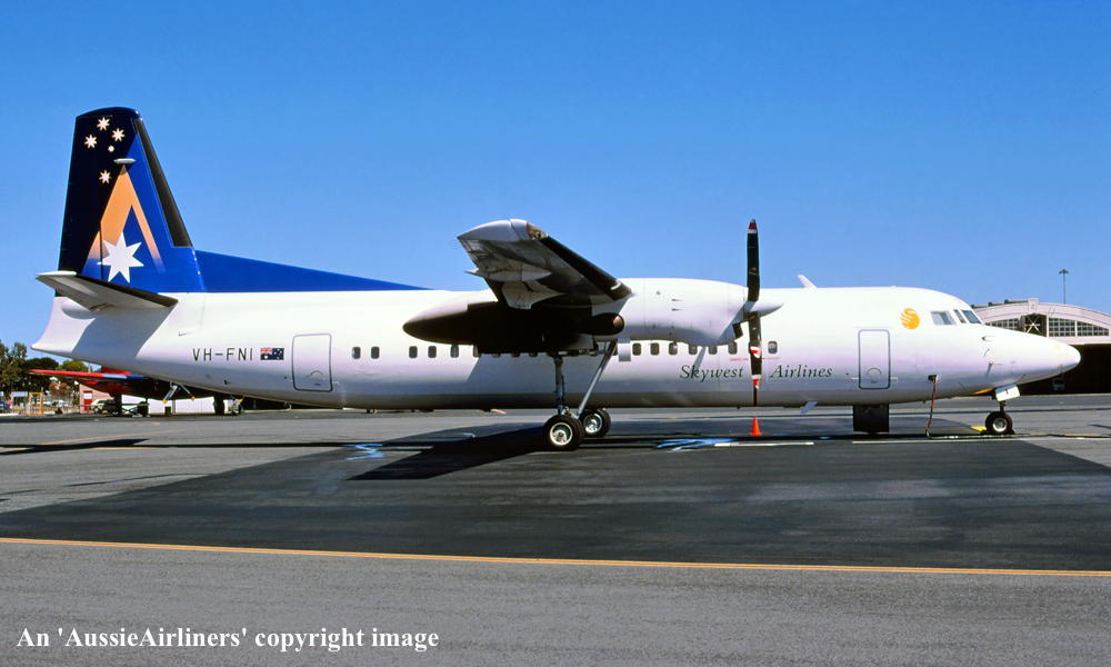 VH-FNI. Skywest Airlines - in the Ansett 'Starmark' livery at Perth Airport, March 2000. (R. N. Smith Collection Copyright Image 1997-266.) |