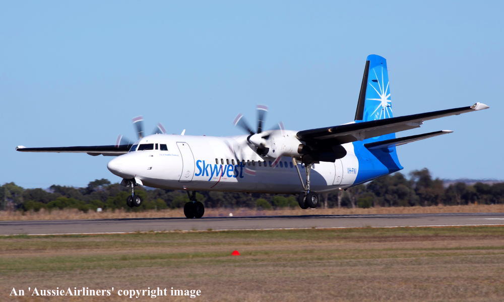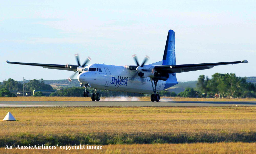 VH-FNI. Skywest - 'City of Geraldton' in the standard livery at Perth Airport, March 17, 2010. (R. Shaw Copyright Image 1997-890.) |